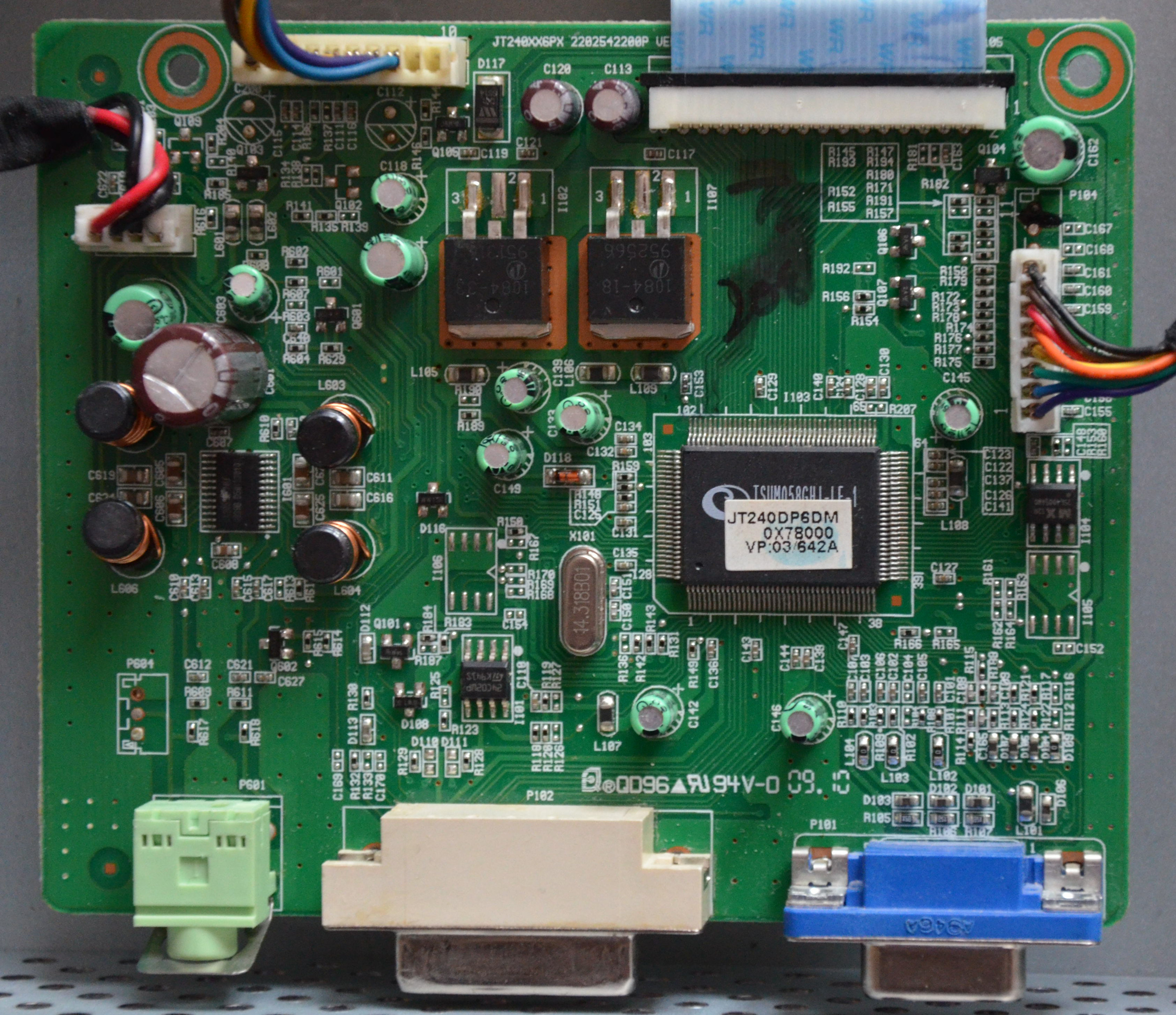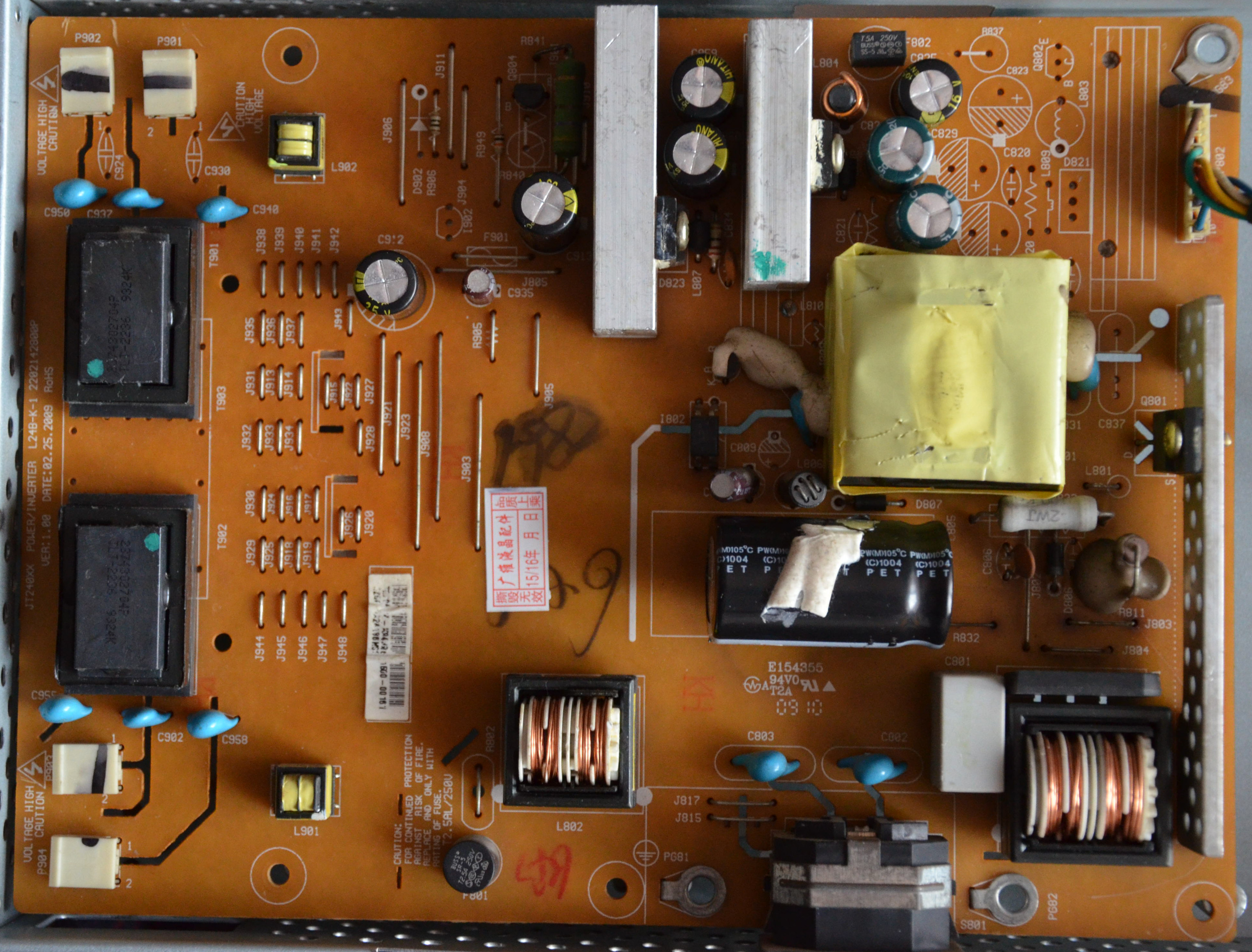 Lastly I found a service manual pdf to a different monitor that uses a variant of the same power supply. It has some schematics of it around the page 83 and 93. However the model JC240XX that's in the pdf has some differences to the JT240XX that my monitor uses like the extra caps in the top right corner. So I don't how much of a help it will be to anyone, either way it's in the attachments.