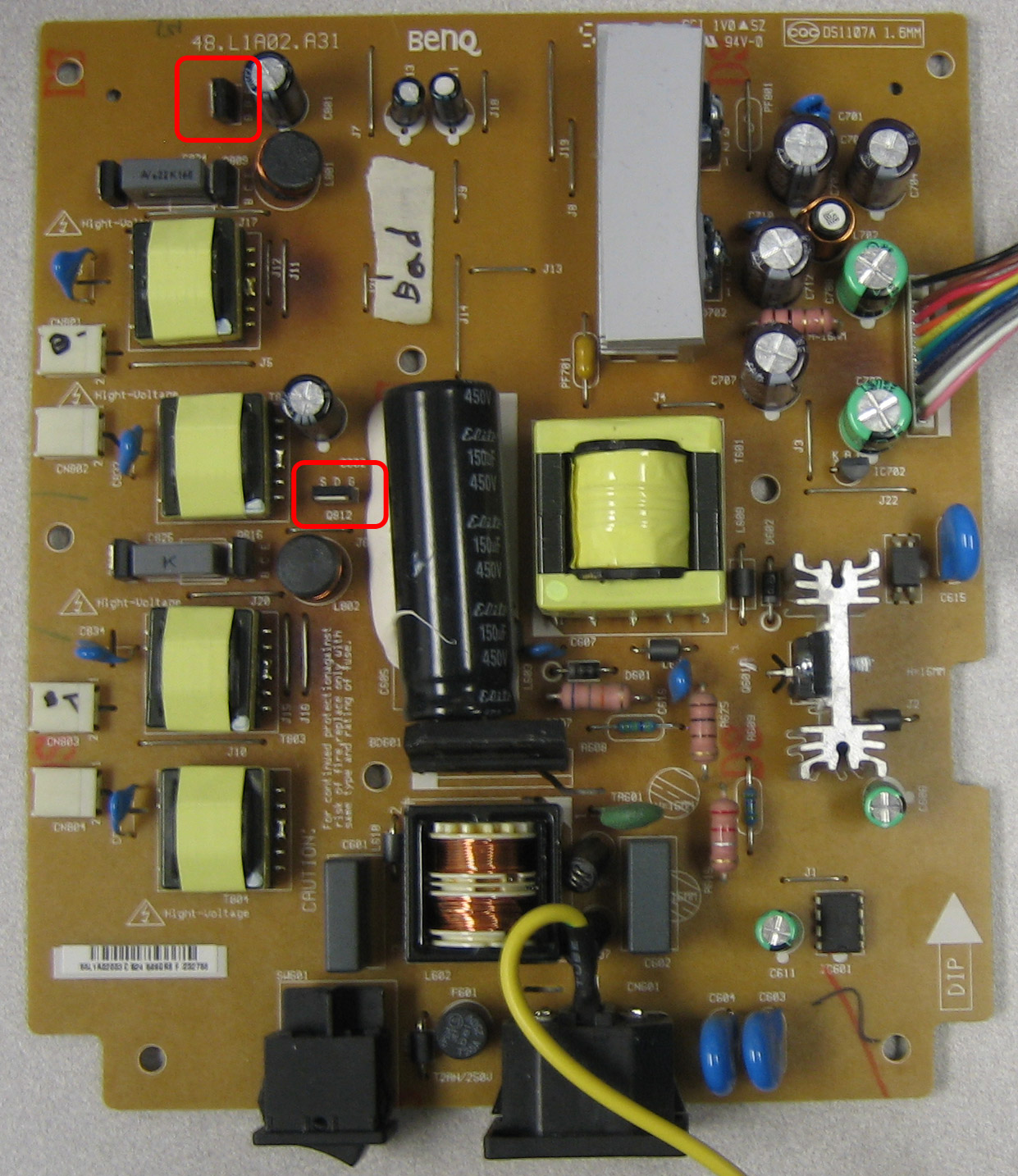 It is advisable to resolder the 4 inverter transformers on these Benq boards as they are suspected of being the reason for the transistors demise, some members havent bothered only to find that the monitor works for sometime then a new transistor goes down again taking fuse as well, if you look at the transformers s/joints with 8 to 10 x magnifying glass you will see ring cracks in solder in most cases