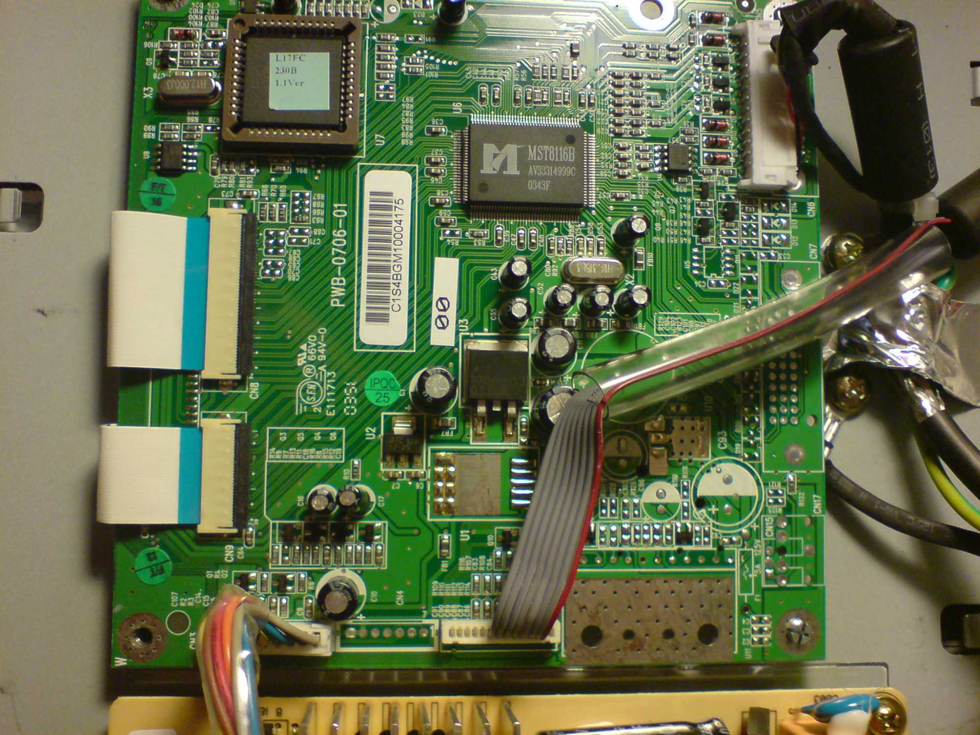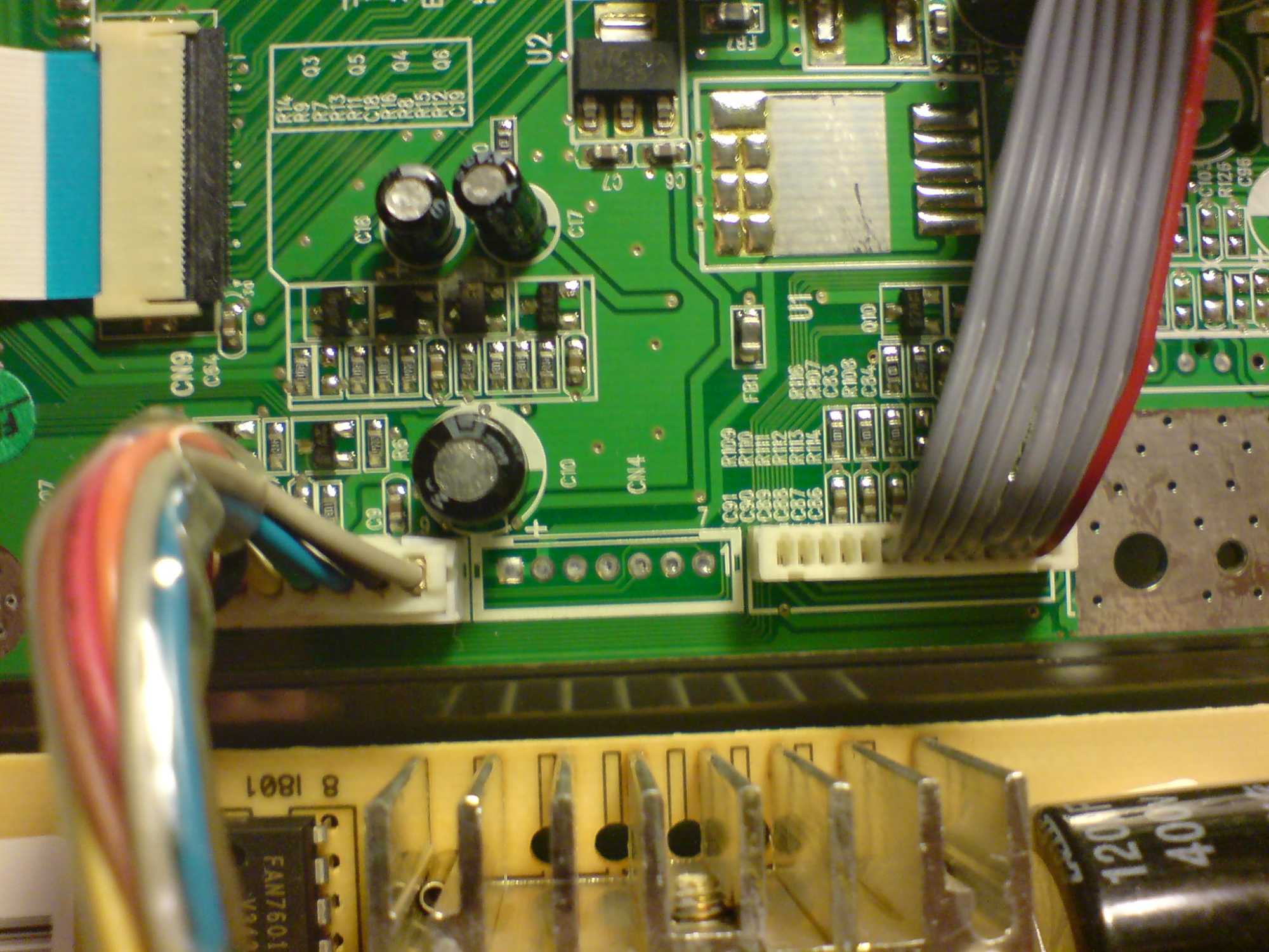 I did not have a problem with replacing any of those good old HERMEI caps (not) my issue is with the 'processor board' (the smallest of the two). It seem that the cable that comes from the processor board that is 1 4/16” wide (connector) and it go's to the bottom of the LCD panel (connector) 1 1/2” wide.