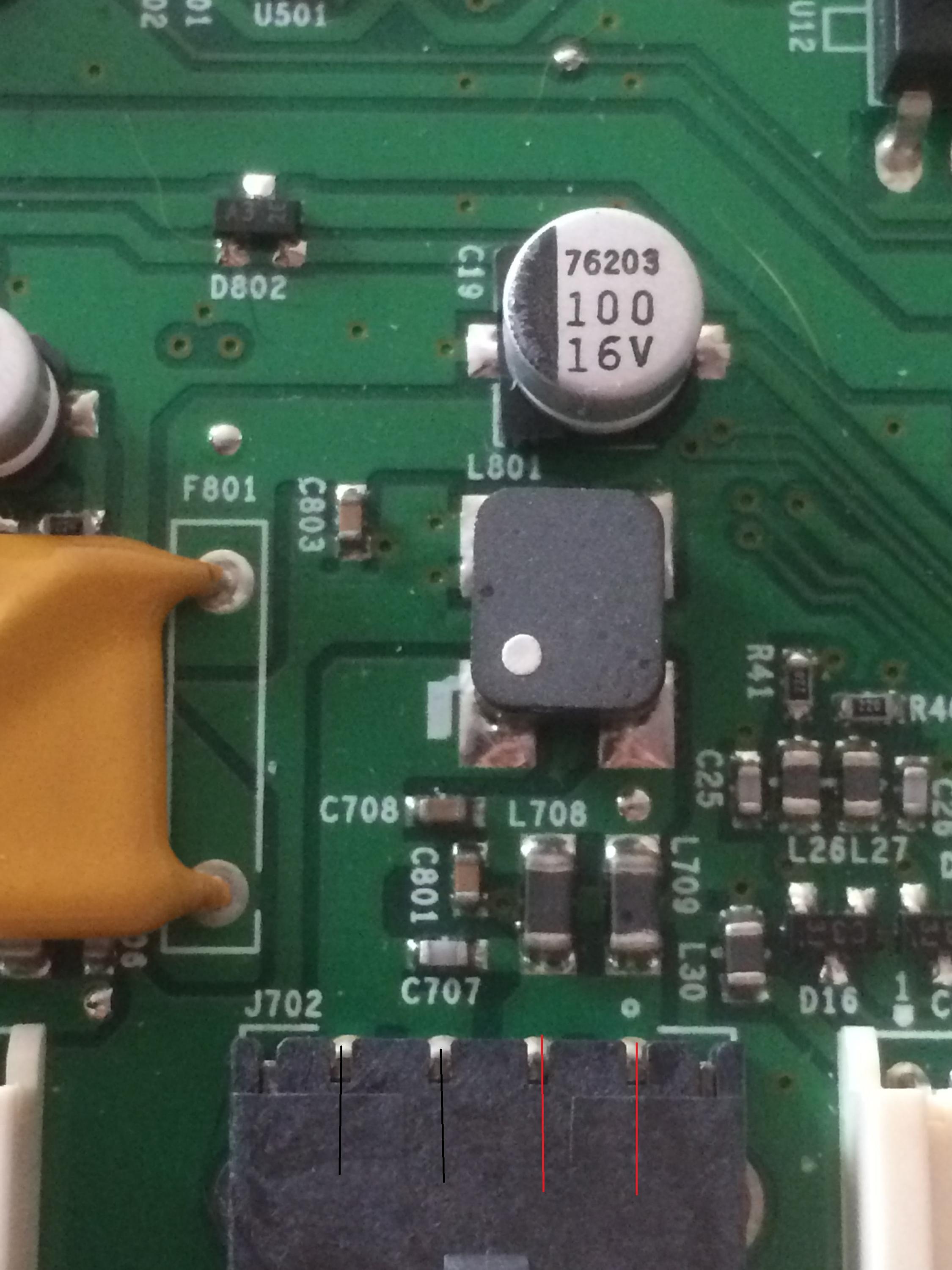 I can't really get my head around what could cause such an issue? There's two pins of 28v input and two pins 28v return that go to mainboard of the monitor. Here's a picture of where the power input is on the board. I'm guessing, that the reason it won't let the Mac turn on is because there's something wrong with returns?