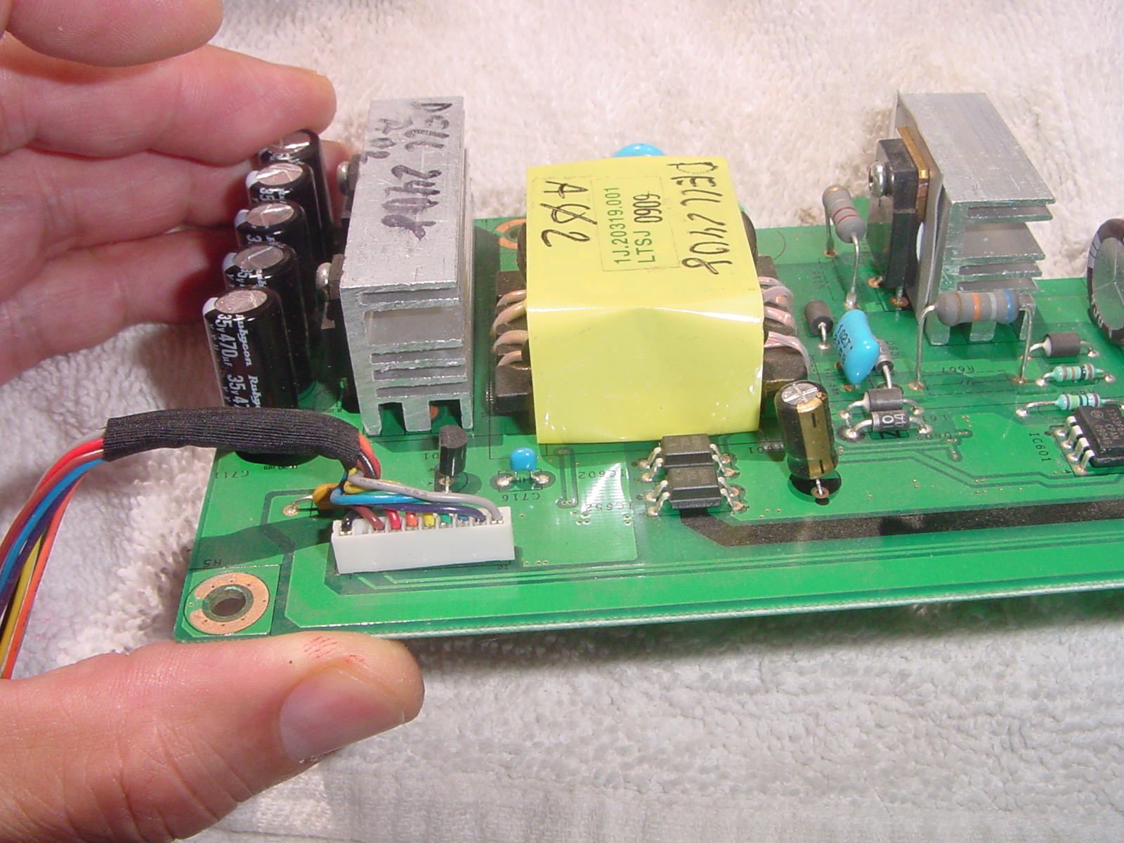 I really screwed up. I removed several caps from the power supply of my 2408WFPb monitor, carefully noted where they went, and then put the project aside for a year.