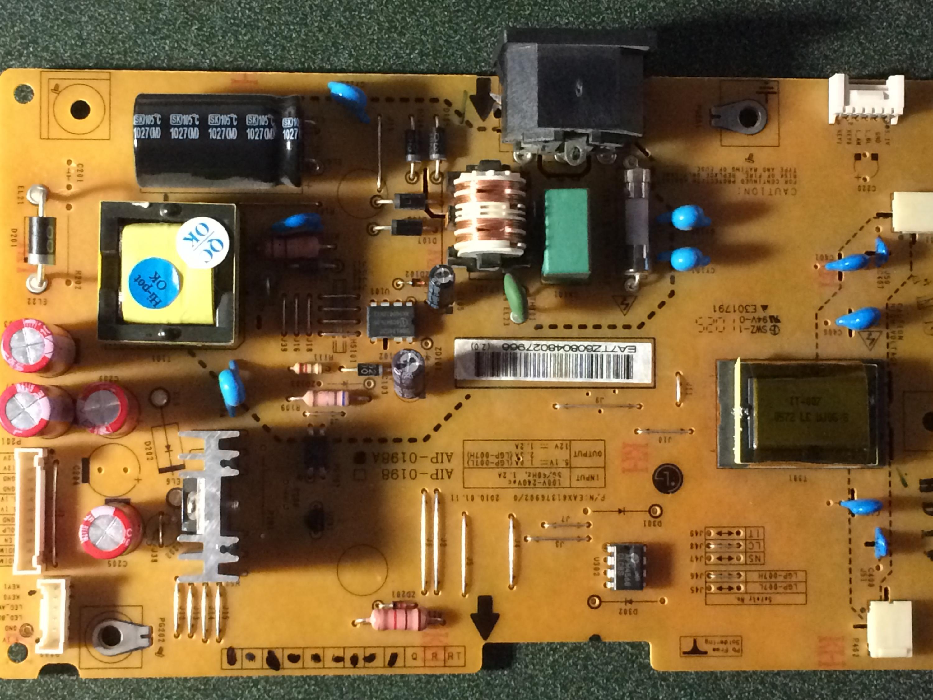 So I've had this monitor for probably a decade now, and it's finally starting to fail. Began with a little sporadic flickering, then eventually started going black (power LED stays blue, can still see image on screen with flashlight). A power on/off fixes it for a bit, but then it happens again. Once it got to the point I was dealing with this every few minutes, I opened it up and just replaced all the caps (minus the big one) on the power board with new Panasonic ones. All the old caps tested fine on an ESR meter, and this worked for 5 days. But the screen just went black again today, so...