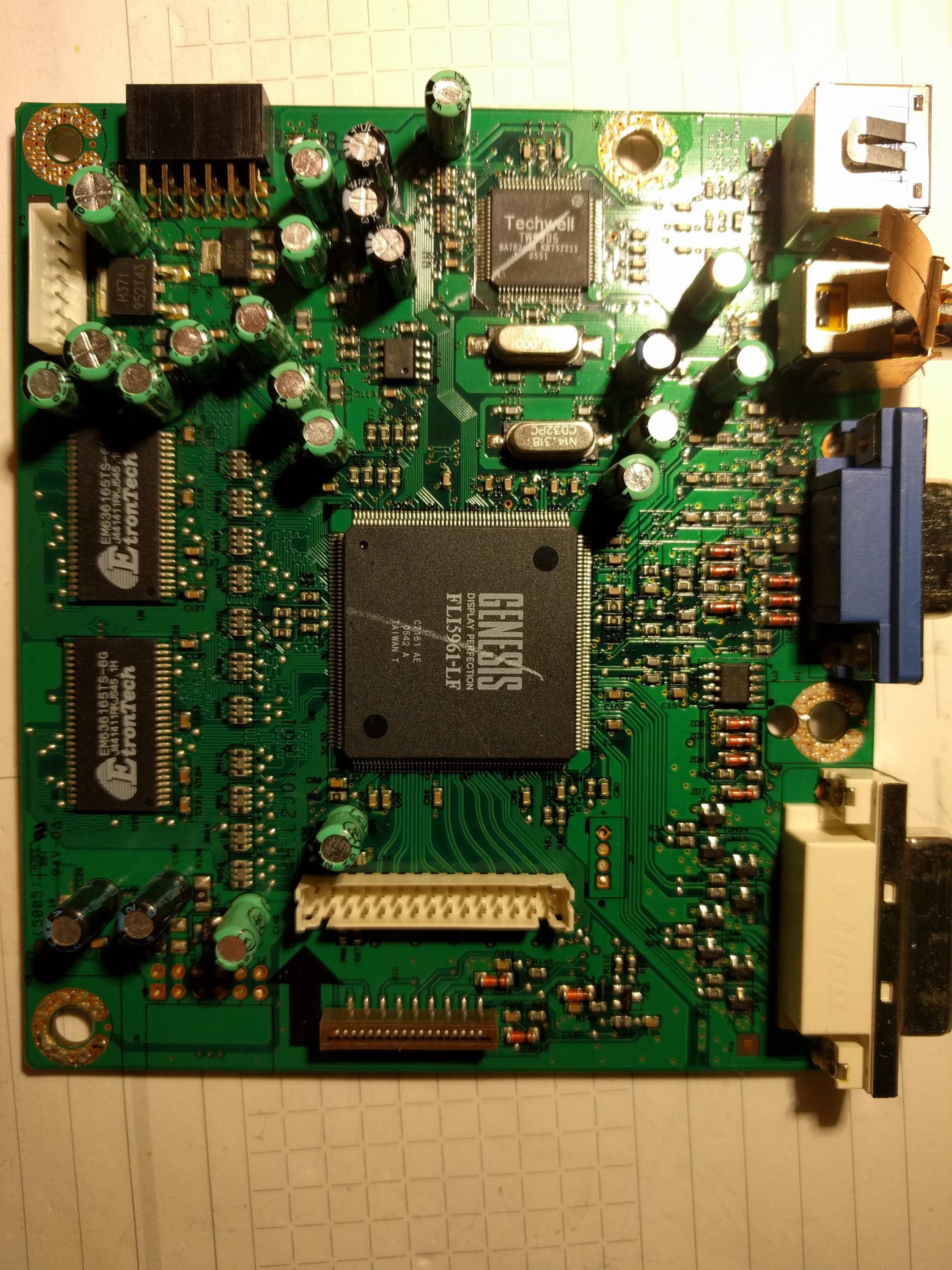I had no time till now to look into the device. Thanks to threads on this forum i was able to repair the power supply on the USB board (i had to replace a small resistor which was out of spec - 47 kOhm). So now the monitor has power, recognized by the computer, but screen stays empty - no osd, no data displayed from the computer.