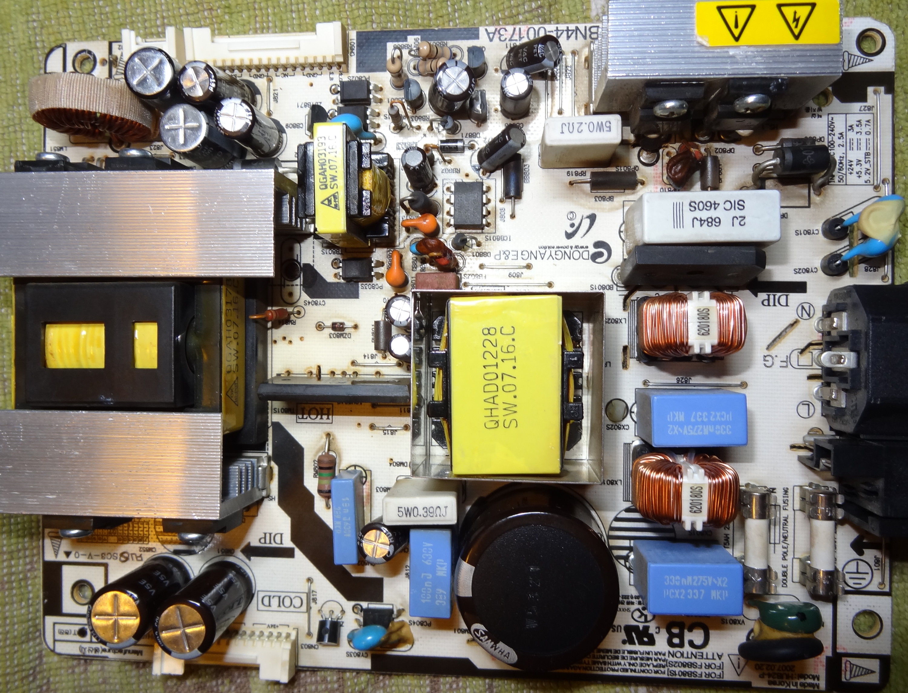 If I brutally connect an external 24V power supply directly on the 24V rail, it all works fine (No short, nothing getting hot) and the monitor works fine.