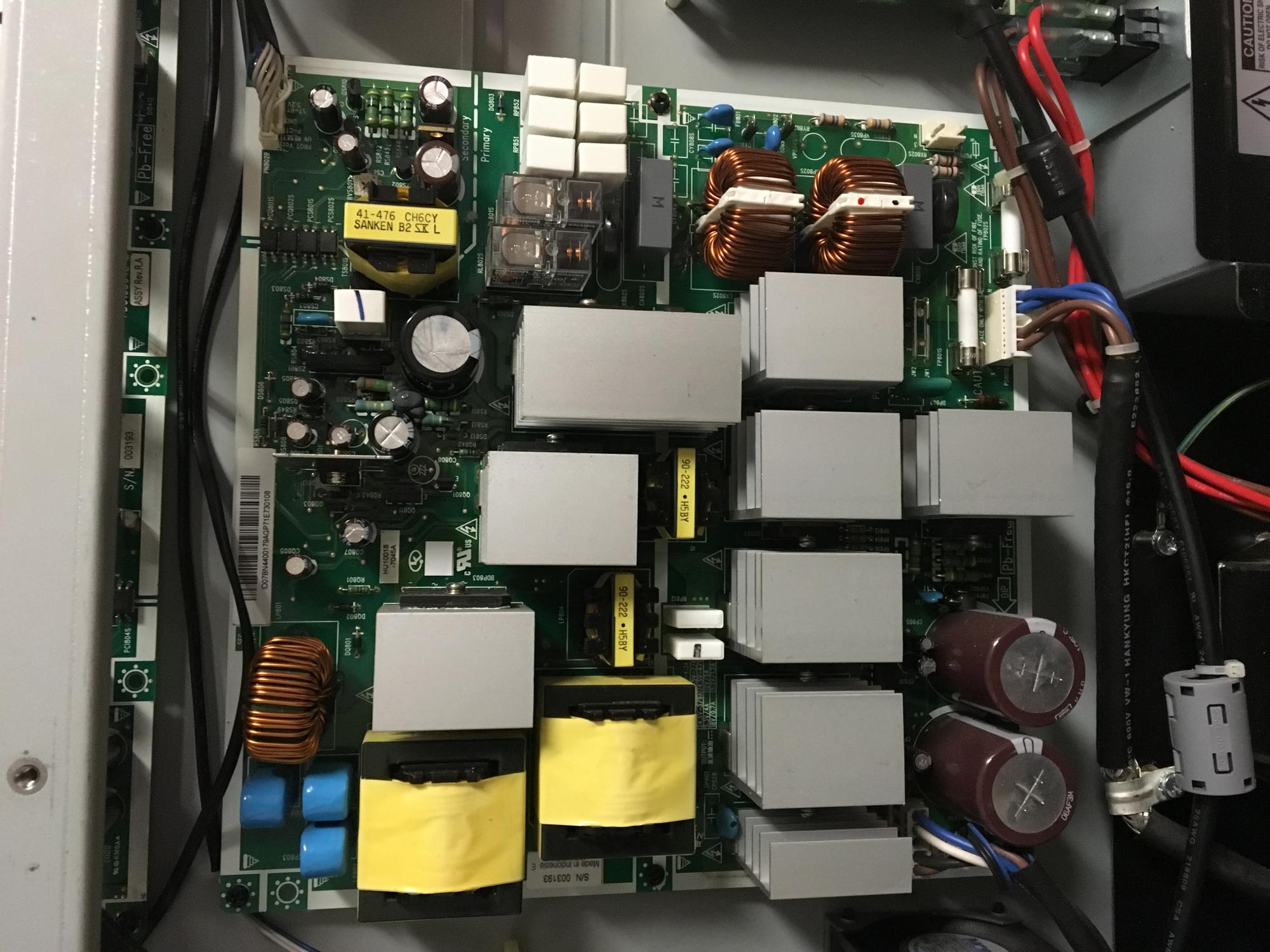 anyway, plugging it in and hitting power leads the unit to cycle on, its a display that's got cooling fans in it so it was designed for 24/7 usage like the Samsung site says, but all the fans will kick on, the display will light up in full, theres no indication of backlight burn out just by a look at it when it does, and then it will power off. THEN it will re-cycle on and repeat the process 2 more times before kicking off then go unresponsive until I hit the power again, and every time it kicks off I hear a click from one of the 2 power boards. knowing what I know from the basics is that the screen isn't damaged and it powers on so its half way there, and the main board doesn't look fried after checking and re checking for bulging caps or burned mosfets, so my question is, where would YOU start your trouble shooting and how? and where would I be able to find the parts needed to repair this thing.