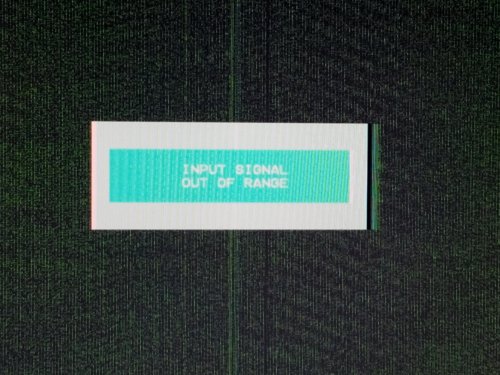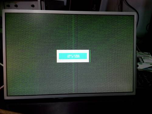 The screen now shows vertical stripes of green color and in the middle the inscription "Input signal from of range"