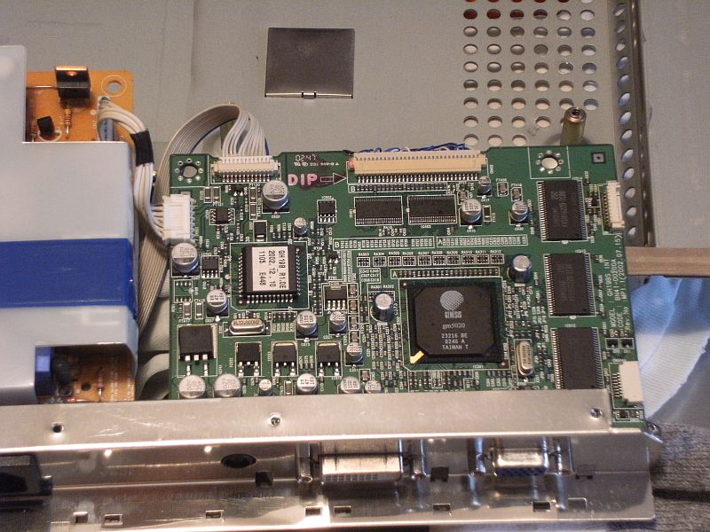 The logic board, based on the Genesis GM5020: most caps are Samyoung polys (or fake polys, who knows?), the two lytics near the Genesis are two Samsung FX 47 uF 6.3 V. Noone bulging.