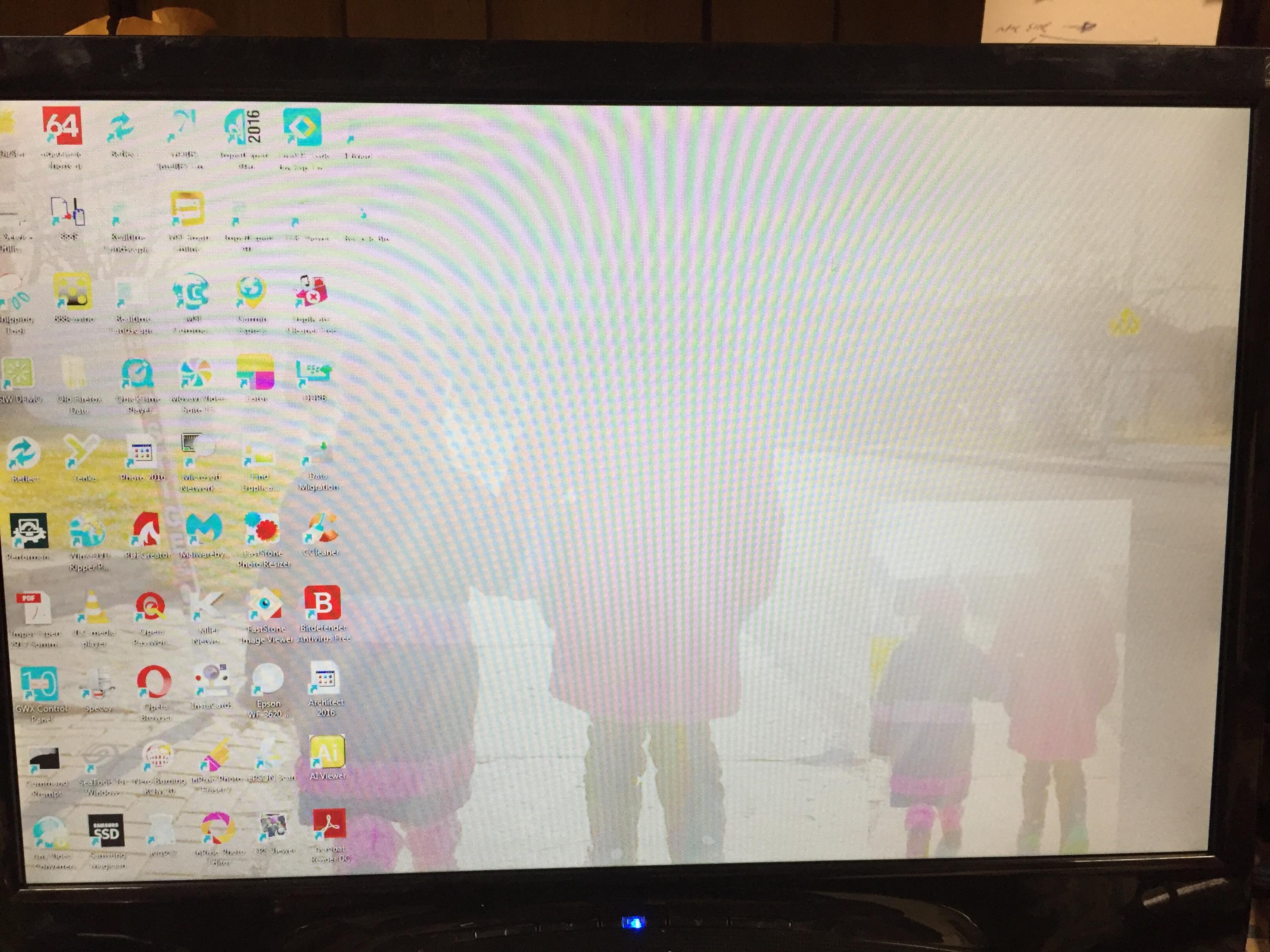 I am experiencing a weird problem with my monitor in that after changing faulty caps on the power board (pictured) because my monitor was turning off , i reassembled and it power up but this time with the colors washed out when in Windows. I posted a picture of the actual monitor and the same image on my LG monitor for comparison purposes