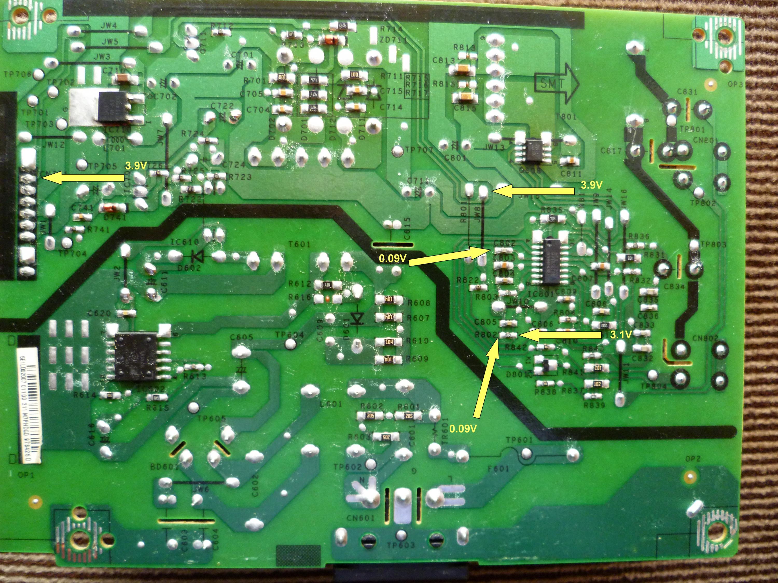 BTW, that point in the picture that you show .09V on the left side of R802 and the other test point you show is CIRCUIT GND!