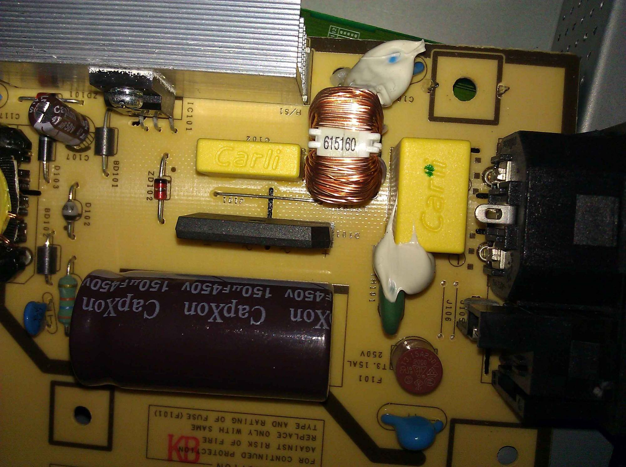 HI all! I was about to trash my 225BW after replacing it with the B2330, so I decided to take it apart to see if I can repair it myself. Thank you GOD! I found this site. My monitor started acting up with the whole screen fades to white and spreading from the center outwards, and I have to wait for 30 seconds to a minute on white screen before turning it off and then on again to get the picture back. Sometimes I have to cycle the power button on and off 5 or 6 times to get it to work, but now just quick flickerning blue LED, nothing more. I just ordered those CAPs and waiting for replacing them and hope for the best (2x565-1553-ND, 3x565-1547-ND, 1x565-2004-ND).