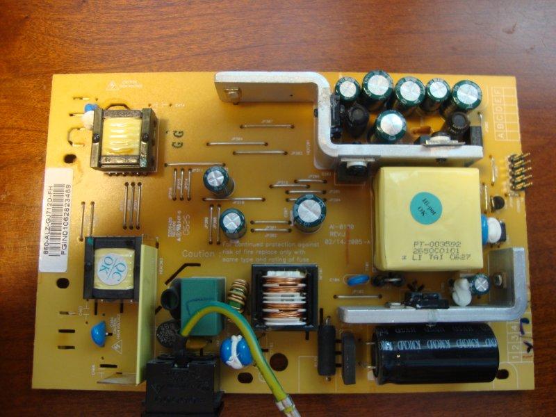 I cracked open one of these today while I waited on some parts for other monitors. My problem on this one is only a brief PLED with a flash of backlights. I recapped the power board with Low ESR Nichi's, PSonics and Rubycons. All matched the originals for UF and V. The originals were SamXon GF's . I reassembled the monitor and still no picture. Same basic problem.