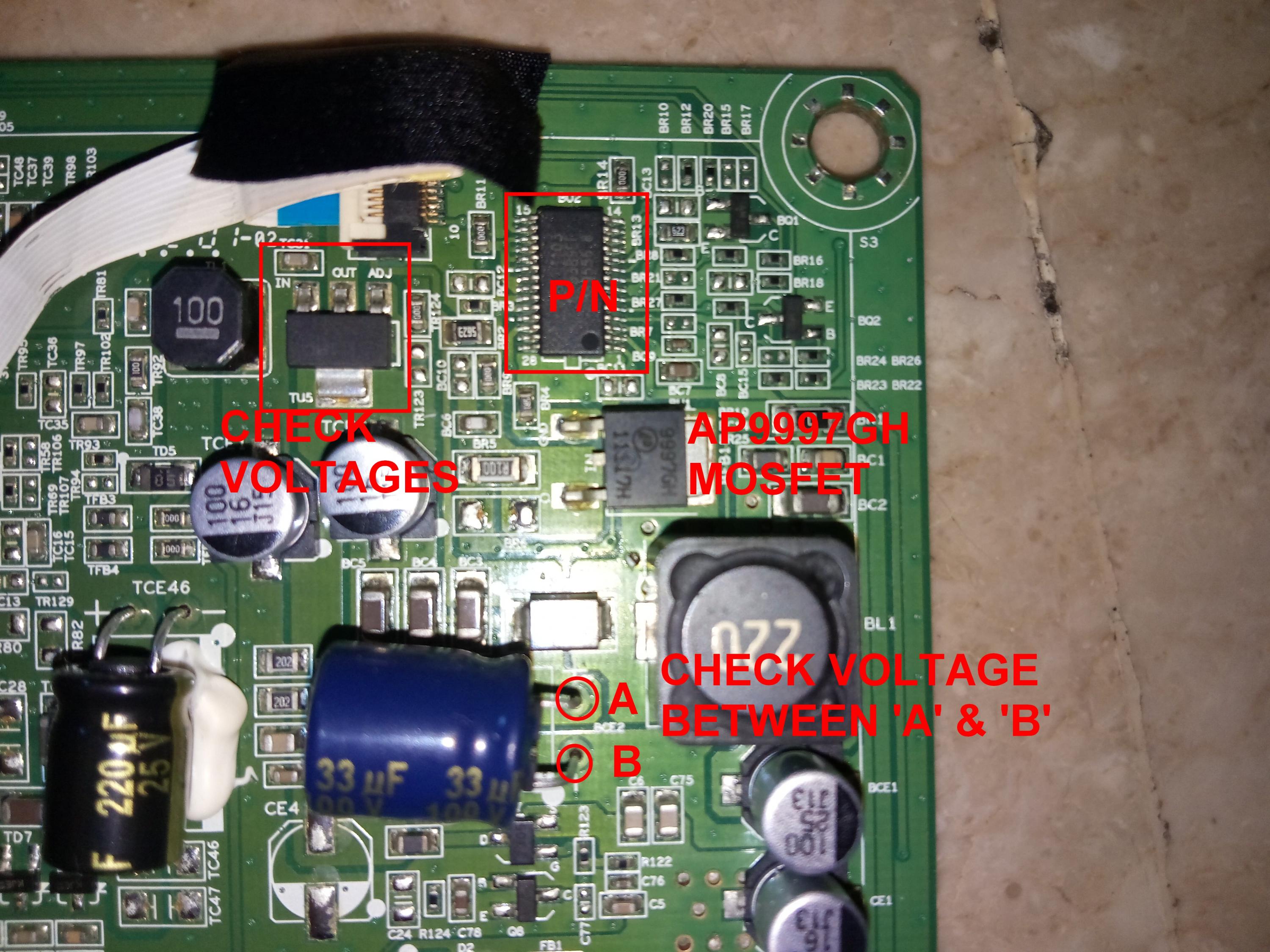 I can provide you capacitor voltage readings (Standby/Full-On) if you want me to list them. But generally when in Full-On Status all capacitors "seems" to be generating appropriate voltages steadily (With LED Backlight). What do you think? Thanks!