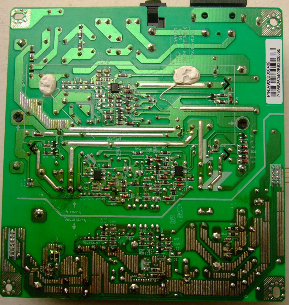 So I continued my fail search and discovered that the transformer had like 330 V in but nothing out, and at least something seems to be short circuited on the secondary side. So my problem is now how do I get a SPI 8TI00214 03 FC HI-POT 0617 GP GH-130?? I have given up goggling it now. Anyone has an idea? Else my last resort is to buy the whole power card of course.