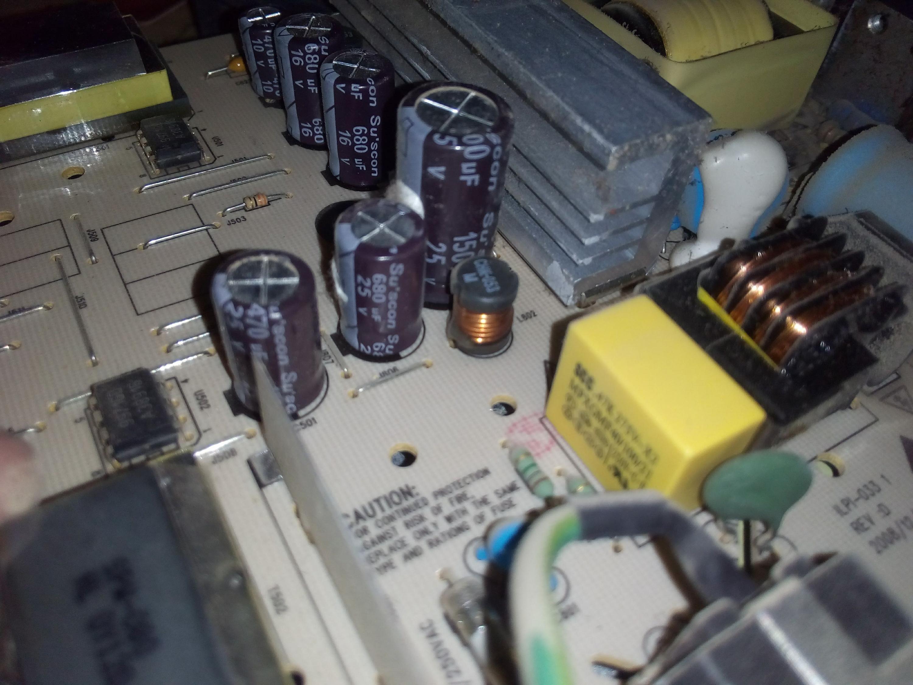 the images for the power board are attached, focused on the capacitors.