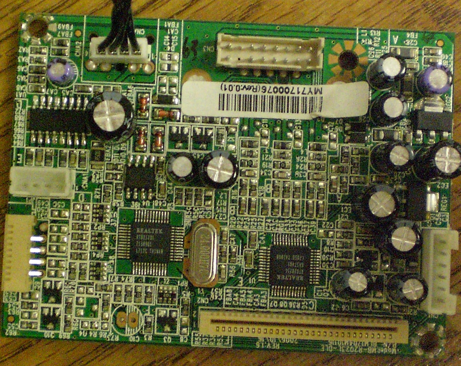 Ok. So I used a good monitor that is the same make and model and replaced the video board on the defective one with the board from the new one and it works fine. Then I put the defective one in the good monitor and it displays green. Remind you I did swap vga cables so they are good. Therefore i narrowed it down to just the video board. If any one can help me I would appreciate it. Also what is the little silver looking box shown in the pictures. Thank you. It says on it 24.000H7C.