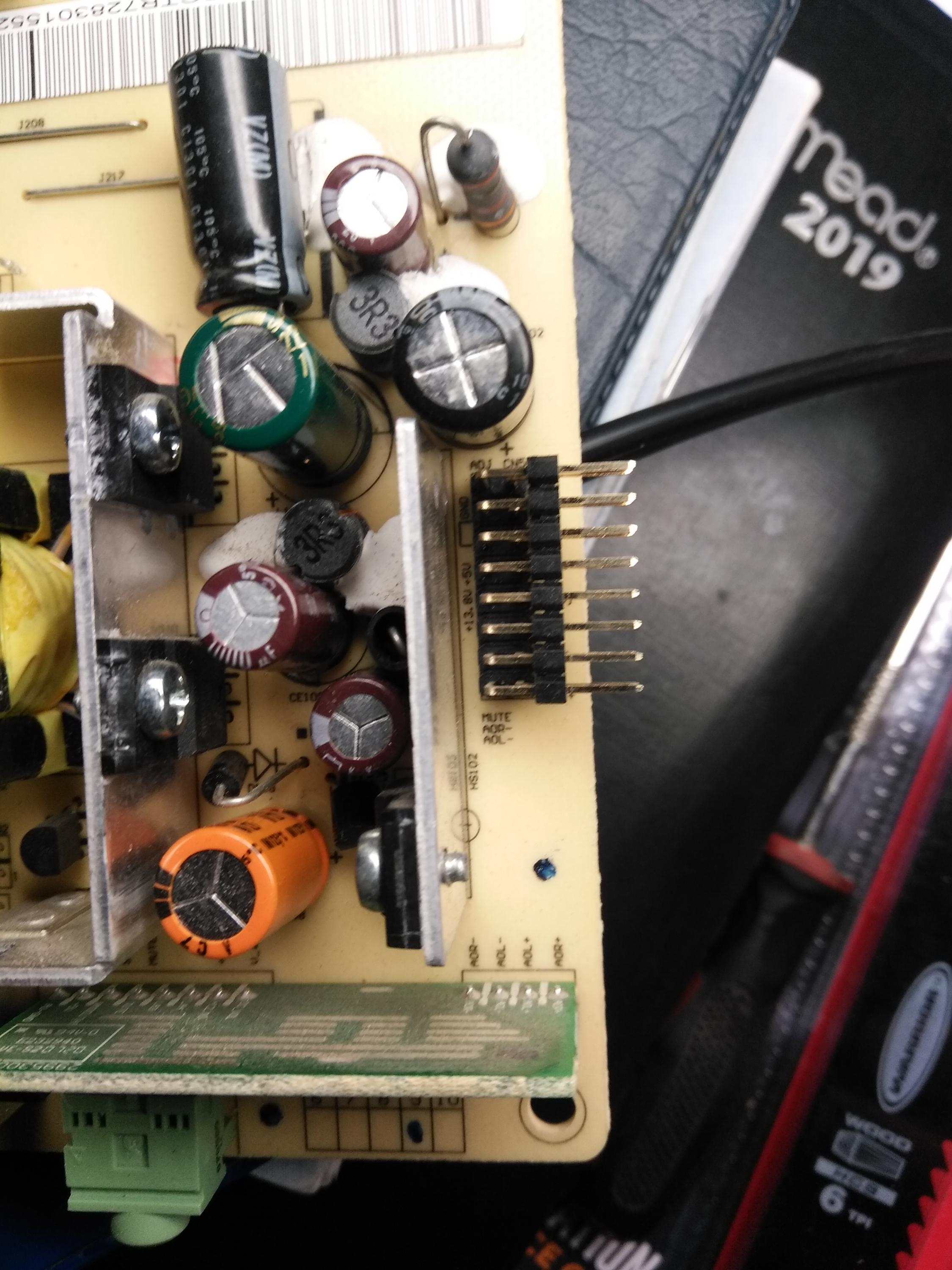 The small connector on the left of the PSU has two cables with 18V and all the other have 0.2V. It connects on this small connector on the left ontop of the panel. I guess the backlight? Seens fine I guess.