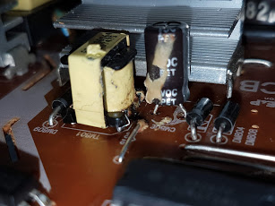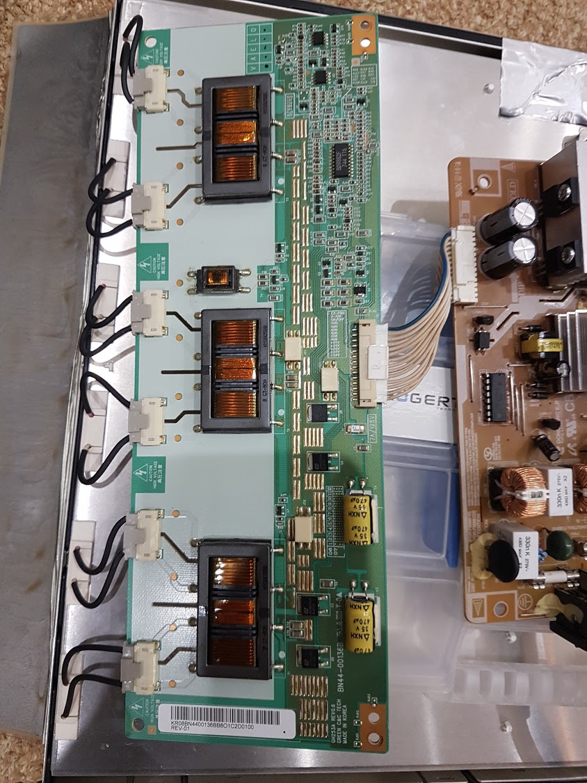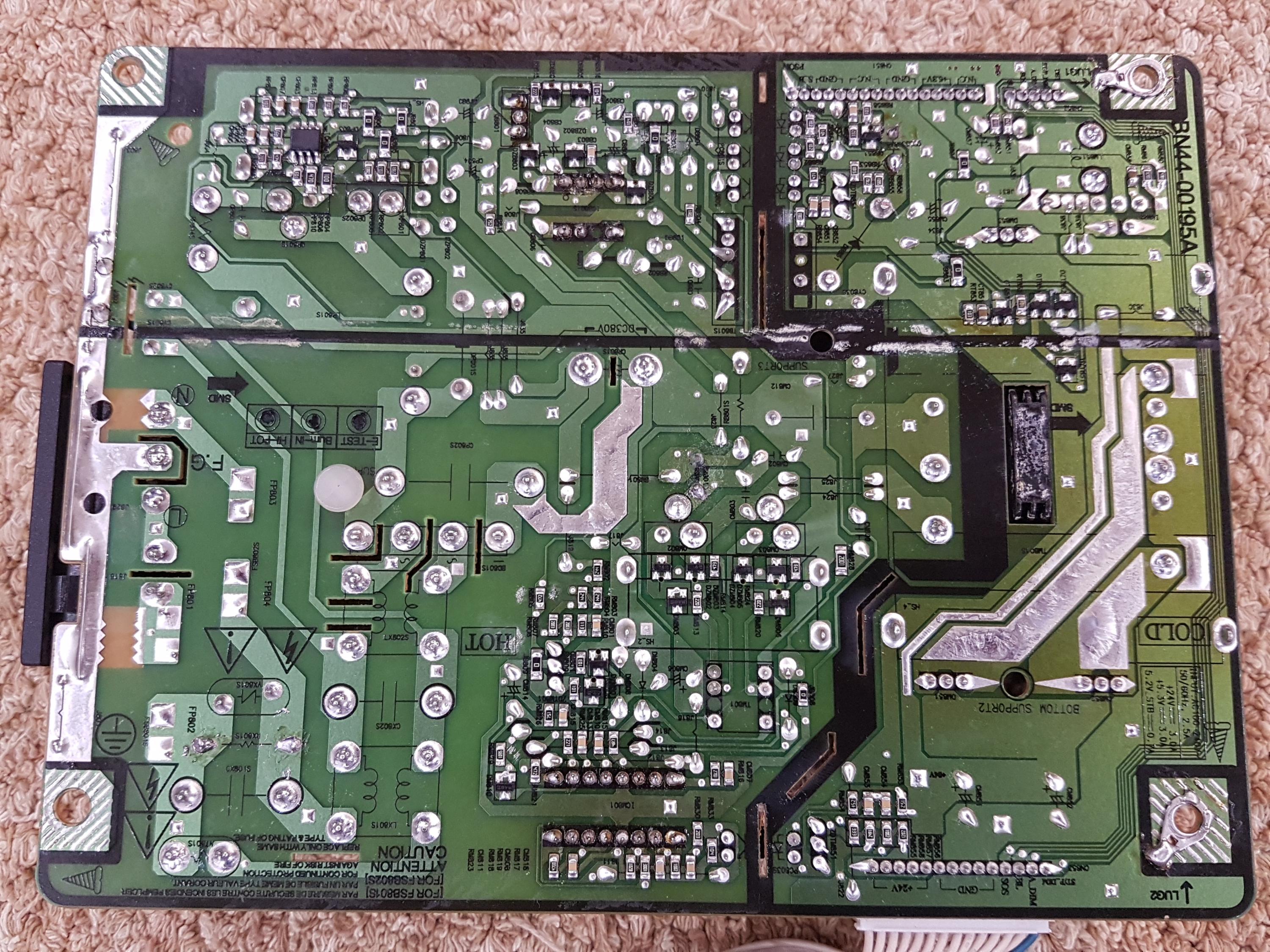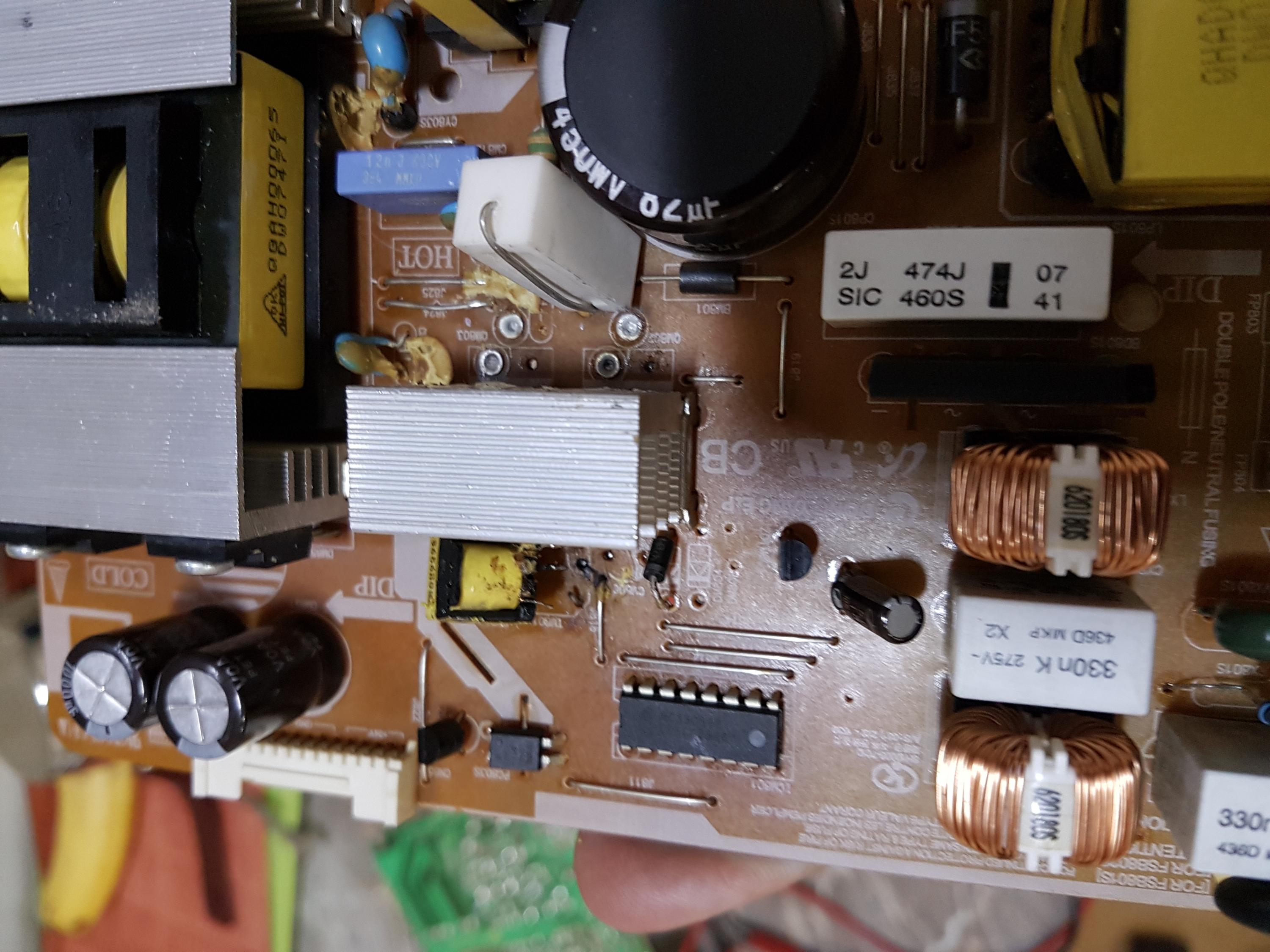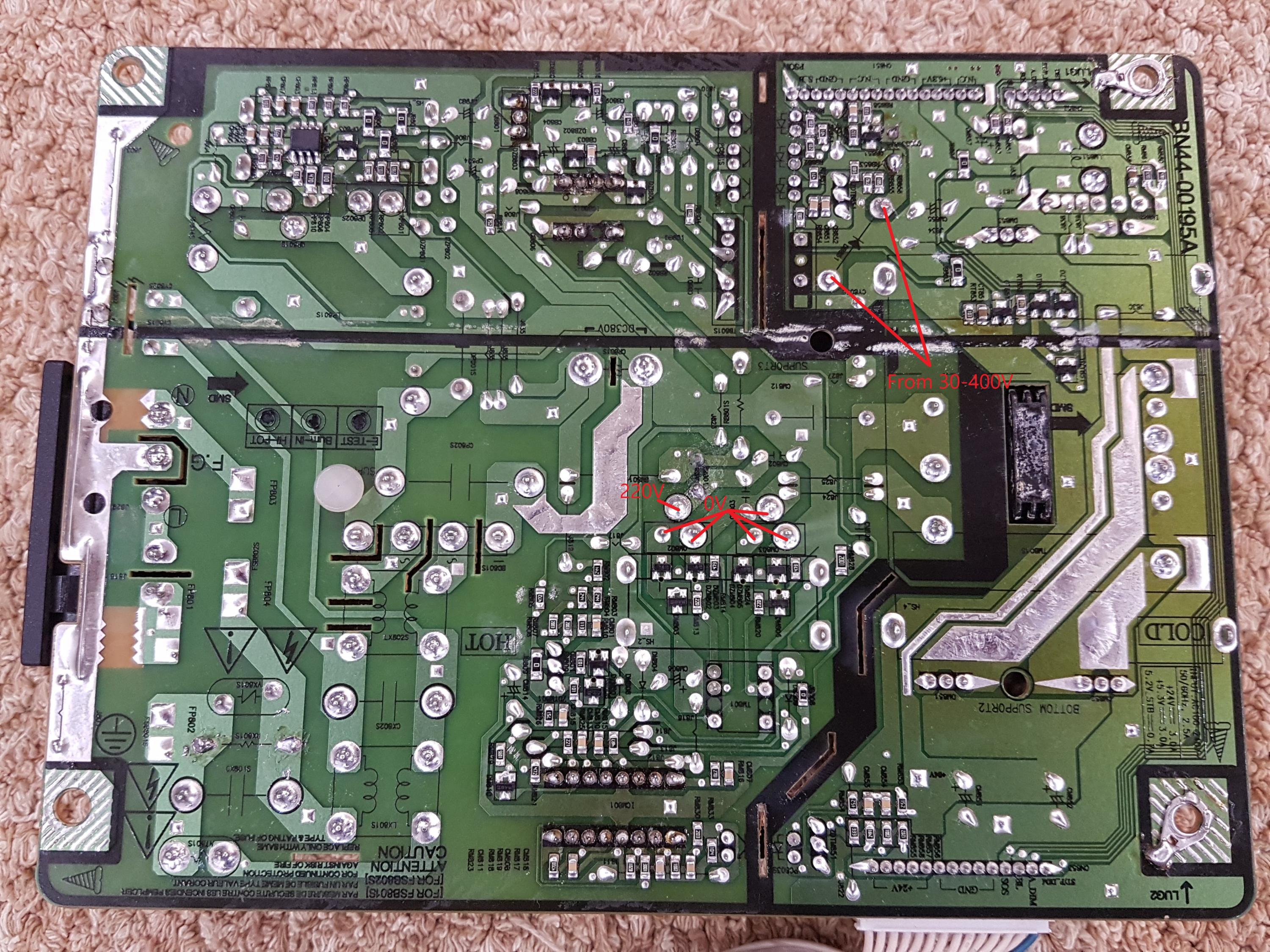 Problem is, once i connect Main Board i start hearing high pitched whining somewhere on the Power Supply Board, and it's in sync with the LED blinking. Any guidance on where i should measure and what i should replace is very much welcomed. Thanks.