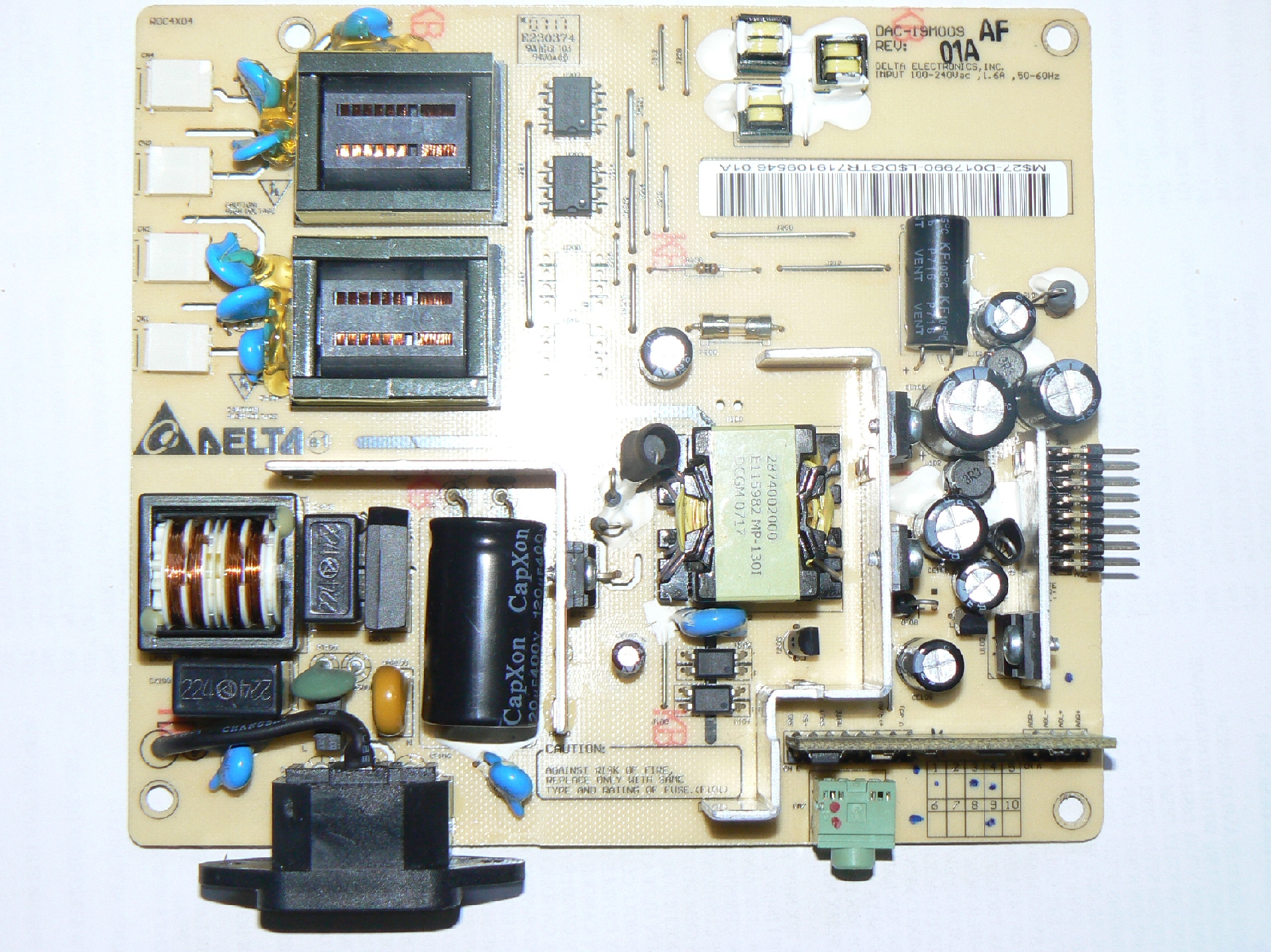 Originally posted by carygI've got a 22" Chimei branded monitor which seems to be fairly similar to the Westinghouse 19" which already has a long thread here, but instead of the 19M005 power board it's got one marked 19M009, and rather infuriatingly it looks like they've replaced the troublesome MOSFETs on that board with something marked P605 BD7C1F. Does anyone here have any experience with this board and any hints on where to look. The caps all look OK, and both the glass fuse on top and the little one underneath test fine. Here's a photo which may help What problem are you having? What problem are you having?
