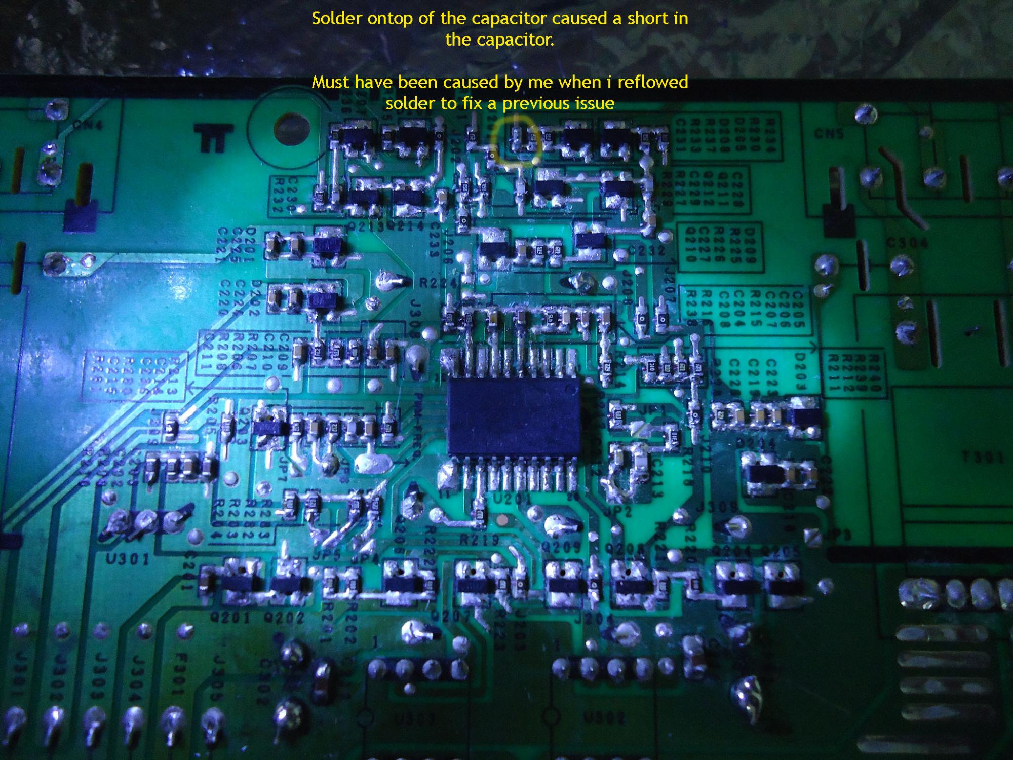 I have attached a picture of the "shorted" capacitor because of solder ontop of it.