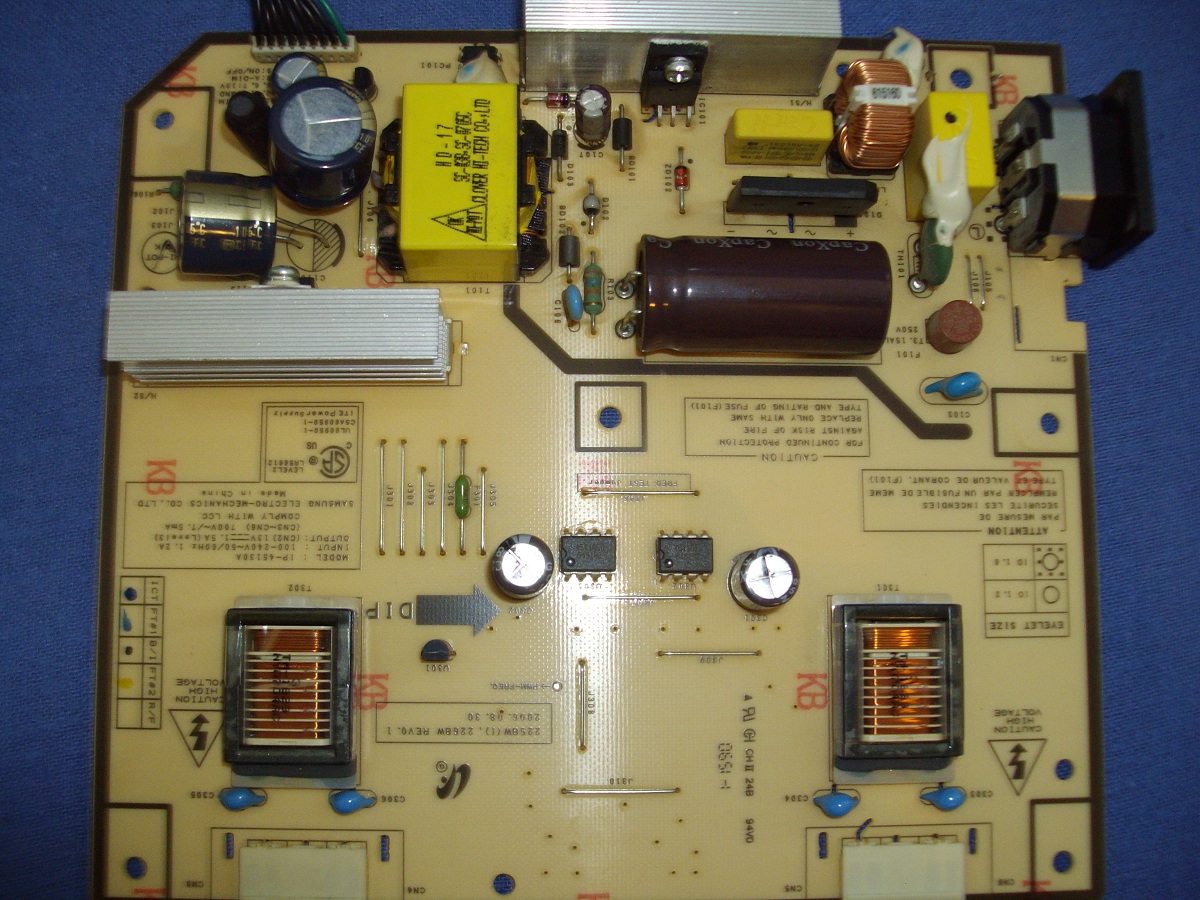 by jdfnnlI am working on repairing this Syncmaster 225BW for the second time. I don't remember if the symptoms were the same, but the first repair was replacing the caps of course. This time the monitor turns on for a couple seconds then goes black, but think I can still see a faint image. The power button does not seem to work, it just stays lit. Took out the power / inverter board and the tops of the caps seem completely flat. I do not have intuition about testing with a multimeter so was thinking of just replacing a part. I read somewhere that when the screen is on without being backlit, the inverter...