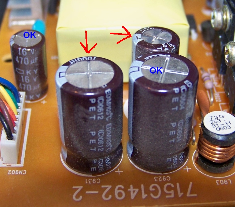 There are two possible approaches to this. One is to replace all the caps on the power supply board. Remember, bulging / no bulging is not a definitive sign of the quality of a cap. Any cap that is bulging is bad. One that is not bulging may or may not be bad.