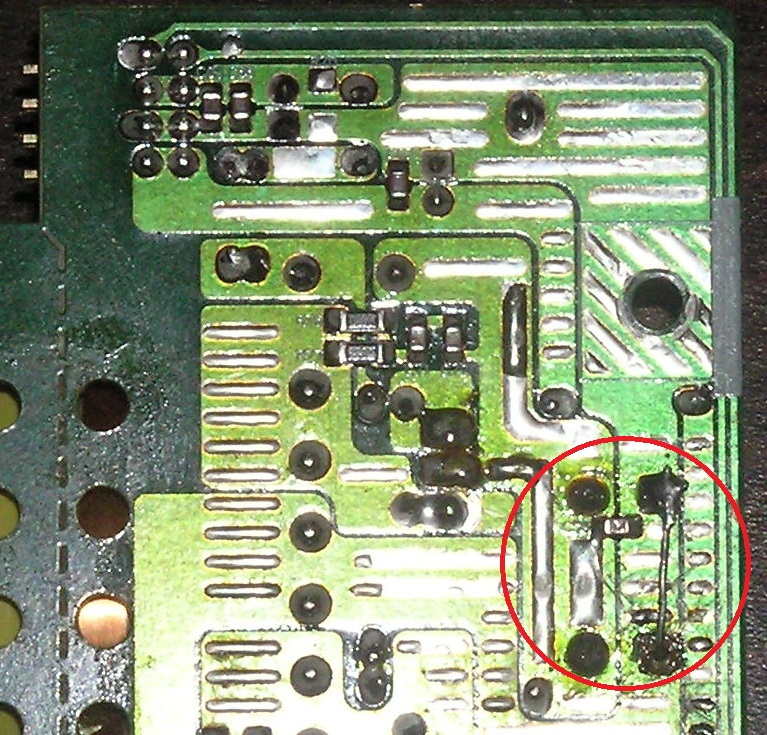 While trying to replace the capacitors on the board i managed to destroy one of the contacts on the board.