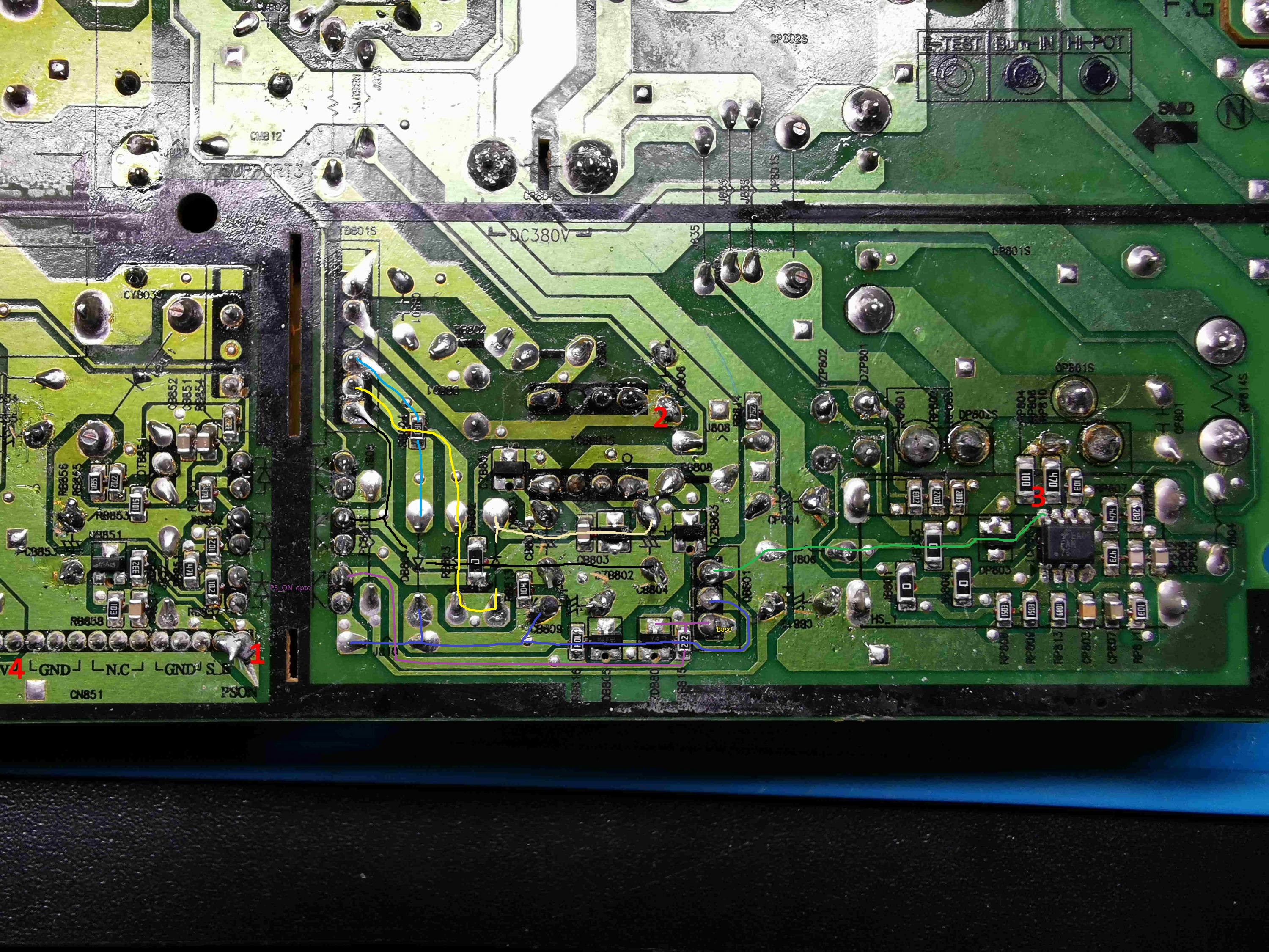 I hooked up an osciloscope and point 3 on the pic showed slightly oscilating ~10V. You keep mentioning CB806 and it was not populated on my board. I did buy this monitor used but I don't think anyone was opening it. So i put on 47uF/50V at point 2. The osiloscope pic is from point 2 with the cap in. The voltage is oscilating sawtooth slowly. 2 second period. Looked a bit strange to me, so i took a pic.