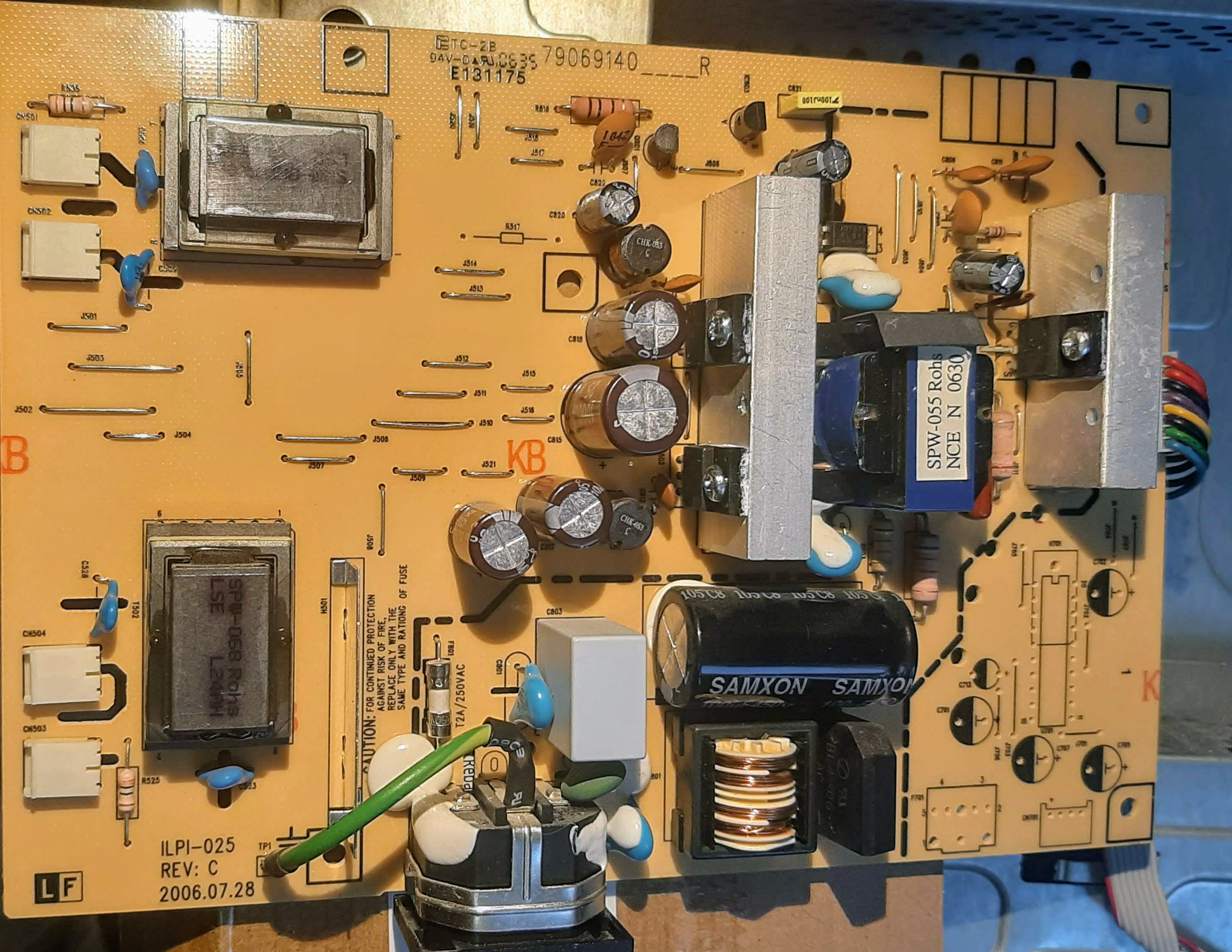 The power supply board is of the type ILPI-025 Rev C (Date of manufacture was 2006.07.28)