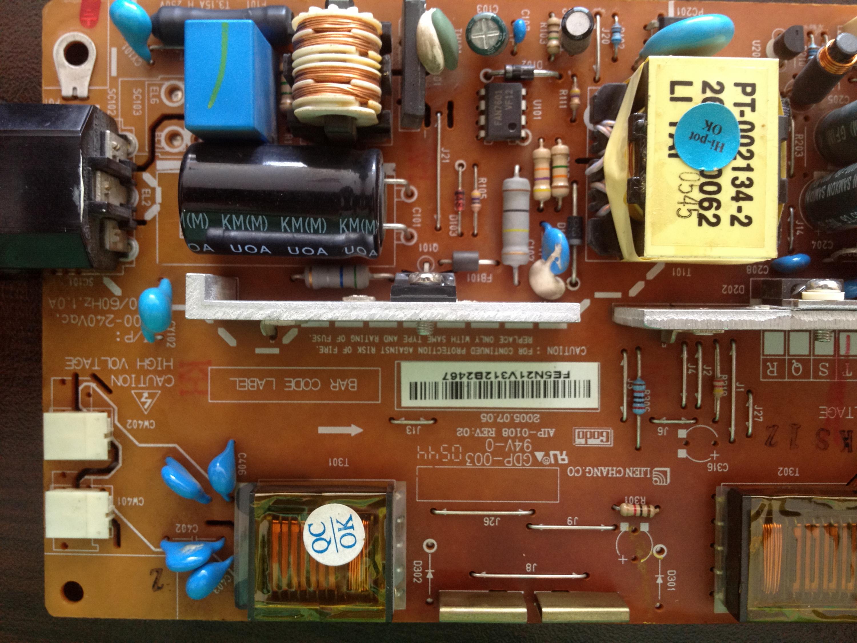 Hi, i was given this lcd monitor last week with the issue of power led blinking. Upon checking the power board, i found 2 pieces electrolytic caps bulged and replaced them.