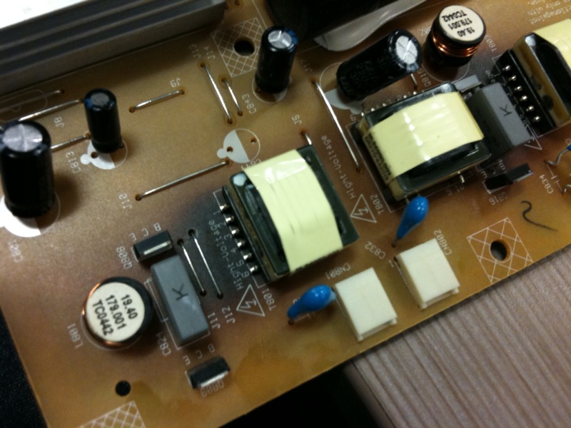 This is where it gets interesting. When I disassembled the monitor to solder leads on c3 capacitor I noticed the backlight flickered...