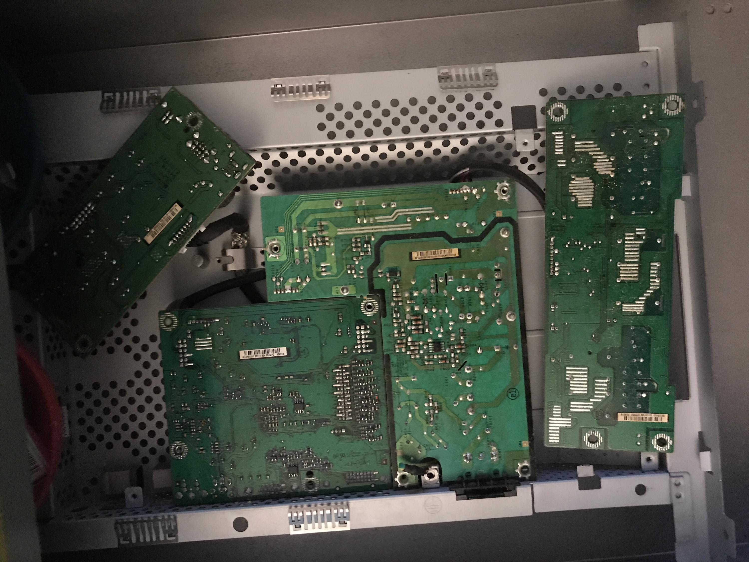 I would like to replace the power pcb, but I can not get it out. I would like to look at the board or something is burned. Burning smell from display. I was working.