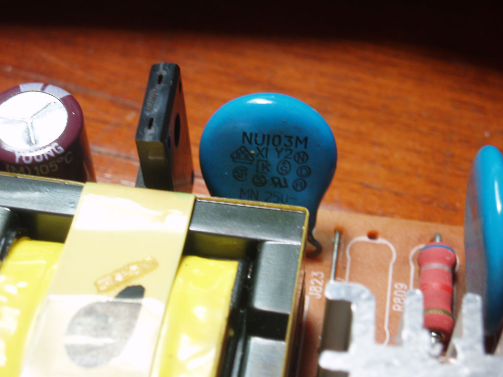 ... after I resoldered the one linked to resistor, the fuse cut off. I laid a solder string instead of the broken fuse recklessly. I connected the power again only to see the' line filet' bombing. The plastic part was melted and foamed up.