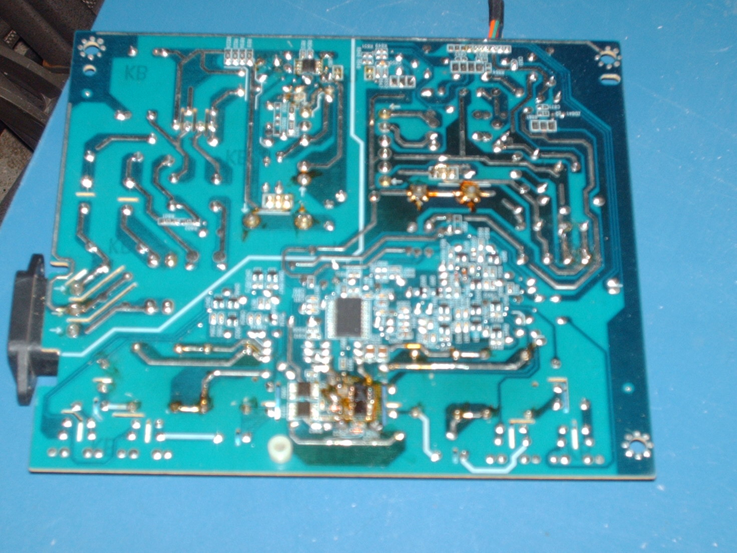 Originally posted by Mark369I don't know why he did that to my board and charged me $50.00 and 20.00 in mofsets. looks like he didnt replace the other two on the other side. I guss thats good for me after seeing what he did. the photos are after i removed a lot of solder . the photo has sum marks on it showning where i think the cap that he removed. can't realy tell with all the solder milted to the board. i have used the wick and flux maybe to much flux. what's good to remove flux form surface of board.