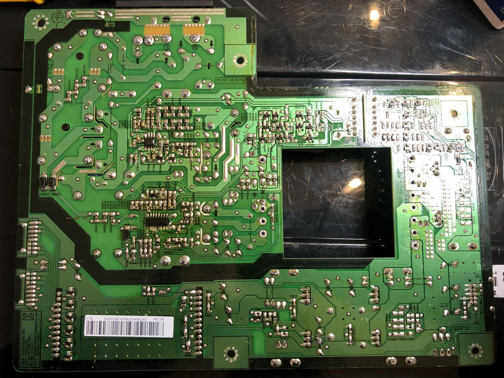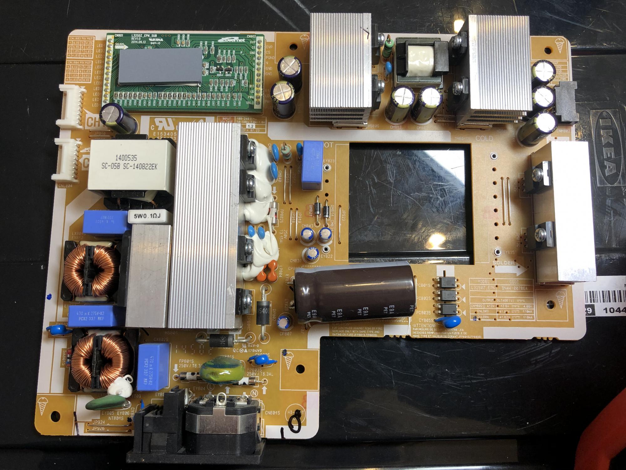 Re-solder any of the connections that use those rivets, start from the a/c inlet and the input filter chokes including the bridge rectifier.