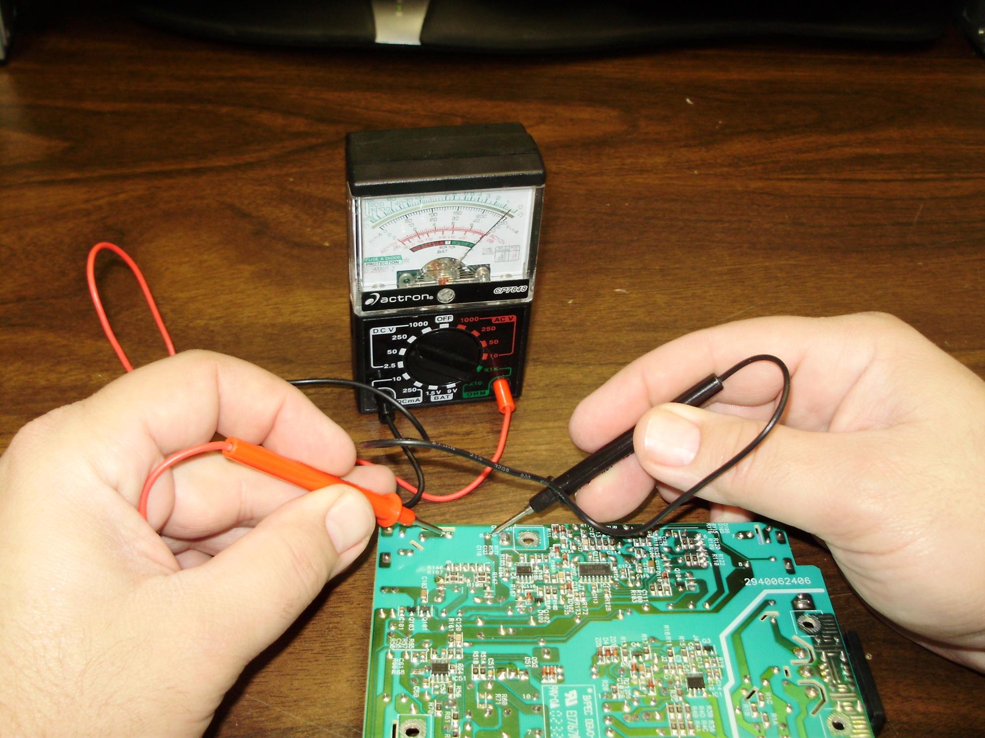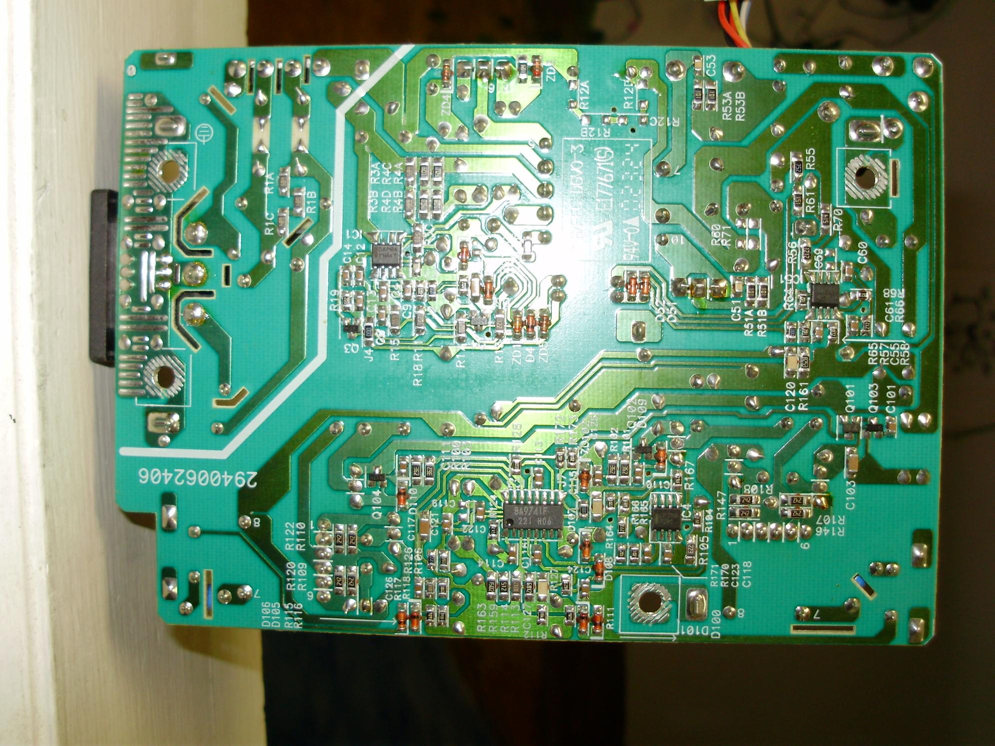 (Well, as long as you know.) Disconnect the power supply / inverter board from the rest of the monitor turn it face down in the same position as the picture. Set the DMM to the 2K ohms range. In the lower left corner of the board you will see two points labeled 7 and 8, with the 8 above the 7. Put one probe on the pin labeled 7 and the other on the pin labeled 8. Write down the reading. Now look at the lower right corner of the board. You will see two more pins, but this time the 8 is to the left of the 7. Measure the resistance between the two points.Originally posted by freakytiki4uHow do I measure resistance? (I know, Im a doofus) I have a multimeter.