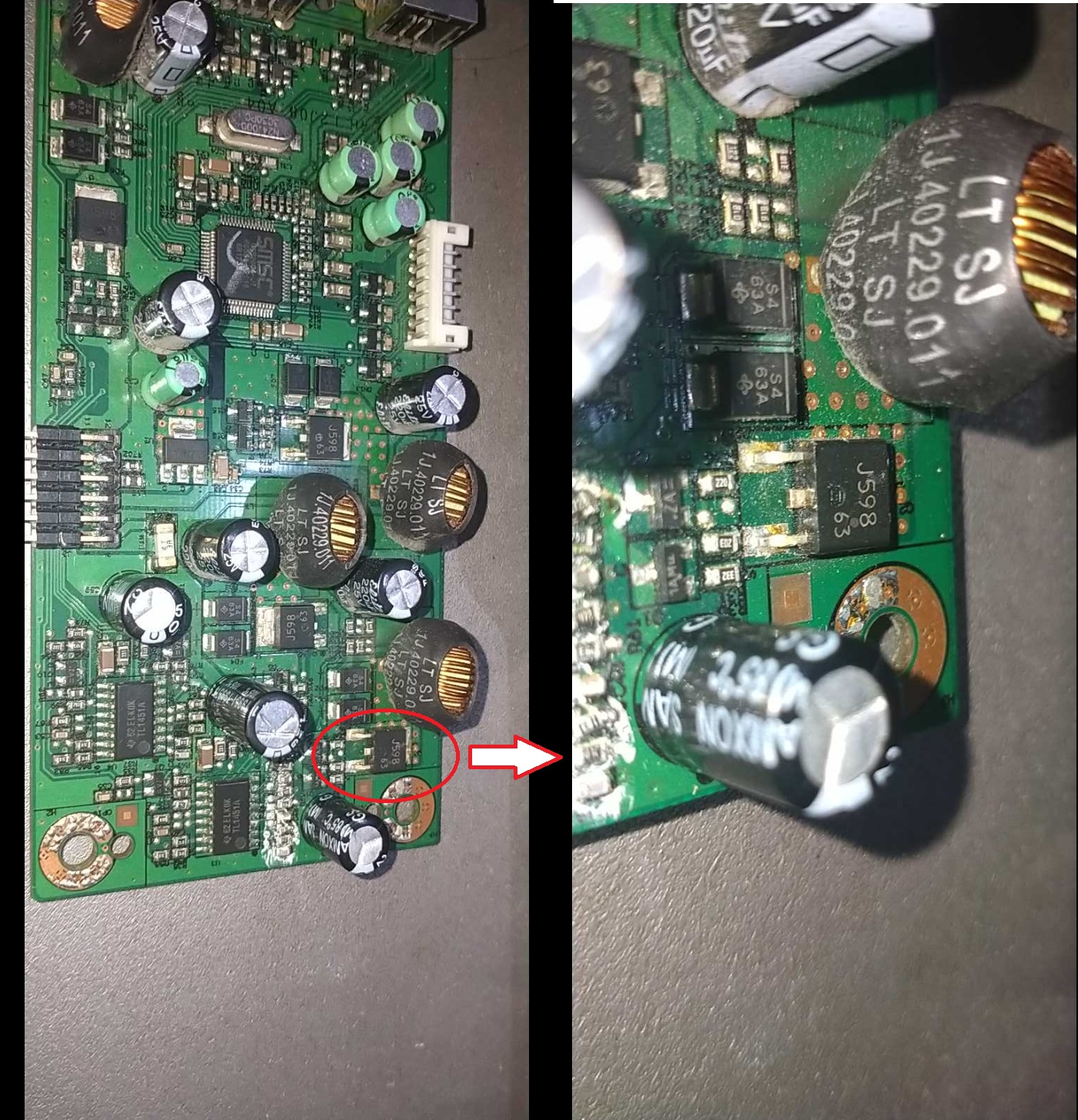 I will buy the Fuse but the 2SJ598 IC is first of all not Available to me and is very expensive if I ship it Internationally. So I was hoping if I could Salvage it from the USB Board itself. Following the Image from BUDM about Circuit, I found out that IC 2SJ598 (Q9) is for Speakers, now I don't want the Speakers so I wanted to know that if I remove it from there and use it to Replace the Damaged IC, will it be ok? ( For Circuit Diagram From BUDM I have attached it too with this post.)( For Reference Follow Image 5)