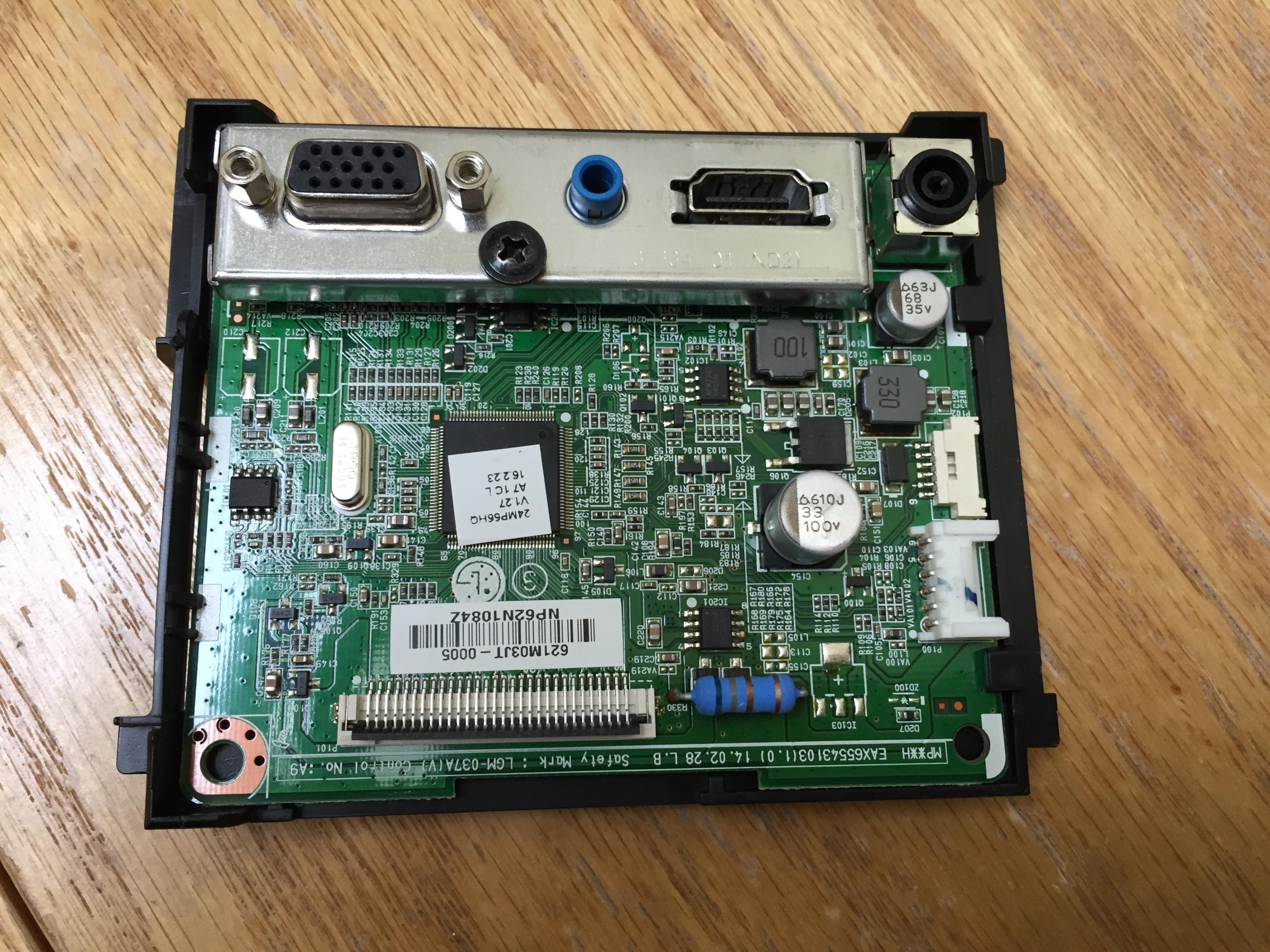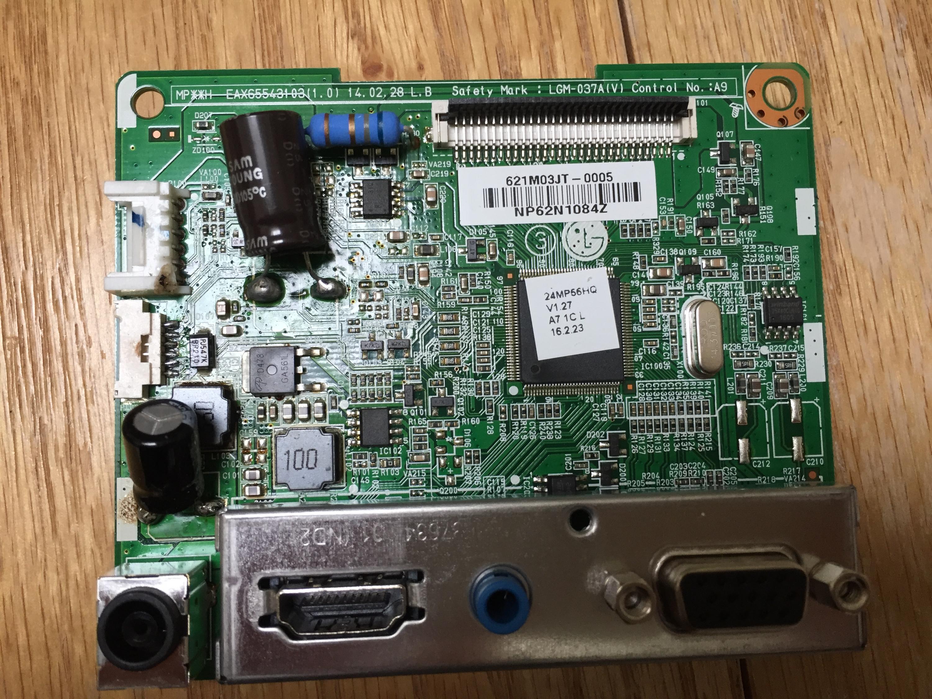 Recently, I got the captioned monitor and the owner said it could not be turned on. I open it up and found that one of the SMT capacitors seemed to be bad. I replaced it as well as the other one. The monitor still could not be turned on.