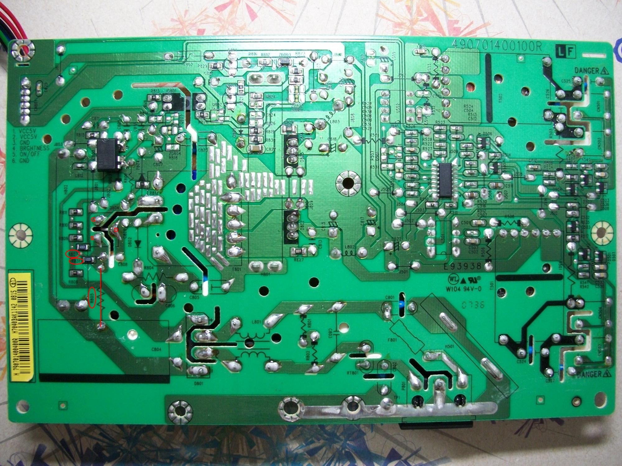 Okay, so we know we have main power and no secondary voltage. The 5V is what powers the logic board to turn on the monitor.