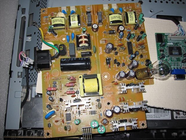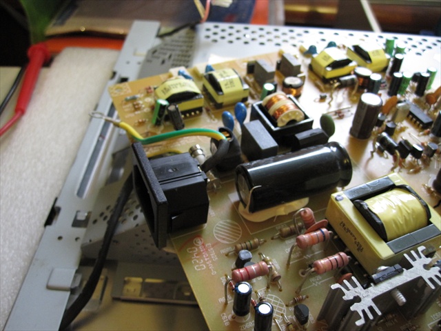Maybe this one is unrepairable, good for parts only. I would just like any opinions on why its burning in that particular spot, no trace there. I repaired a Benq monitor and works fine basically the same as this one. Don't believe power should go across there. Checked all 4 transistors, 2 fets, and fuses, still good after powering on and smoke making an appearance. Haven't changed any of the small caps as of yet, none on hand. Any thoughts! Tia.Comment