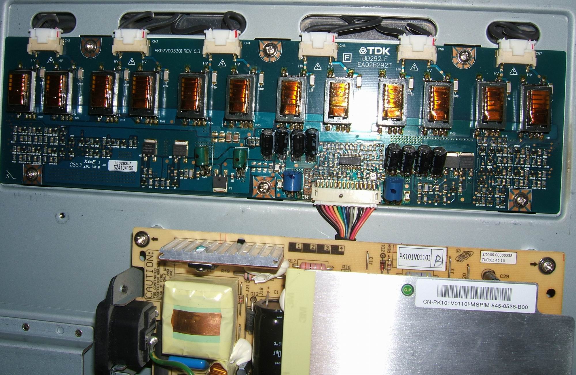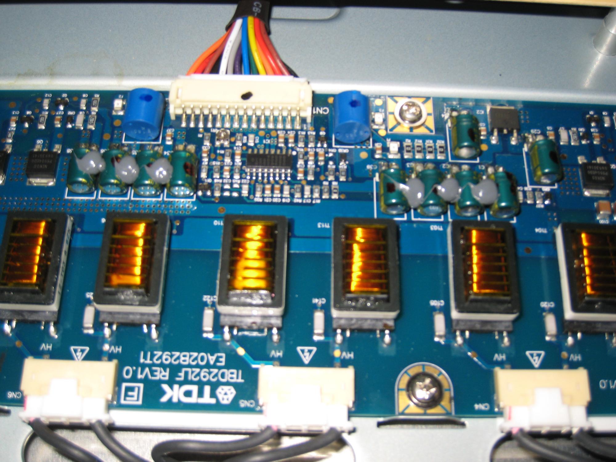 Excellent tech work. I have replaced the four caps on the upper half of the inverter board previously and my customer said she was swapping a computer and when she plugged in the monitor there was no screen image.