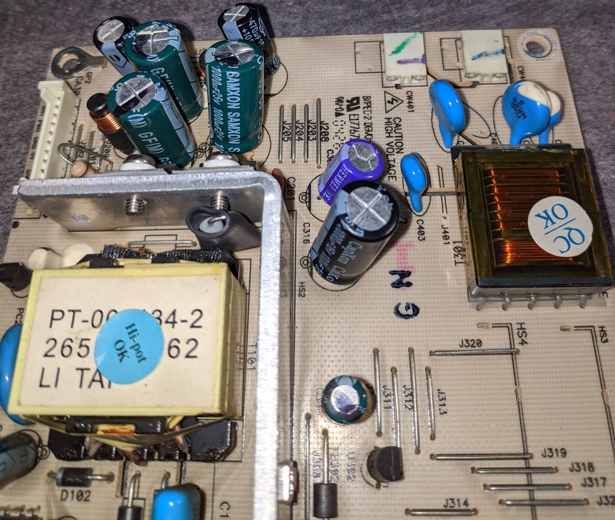 It is just stupid to put caps right above secondary rectifiers and heatsink that get very hot during monitor operation.