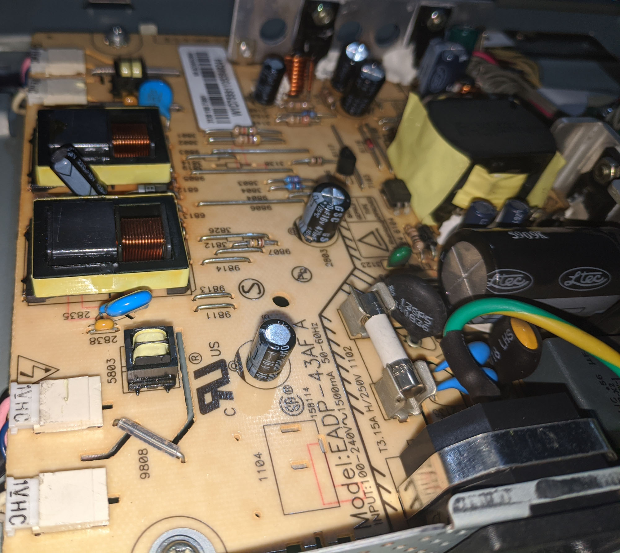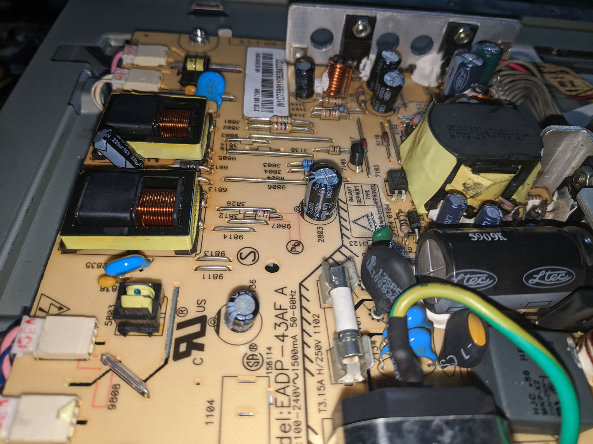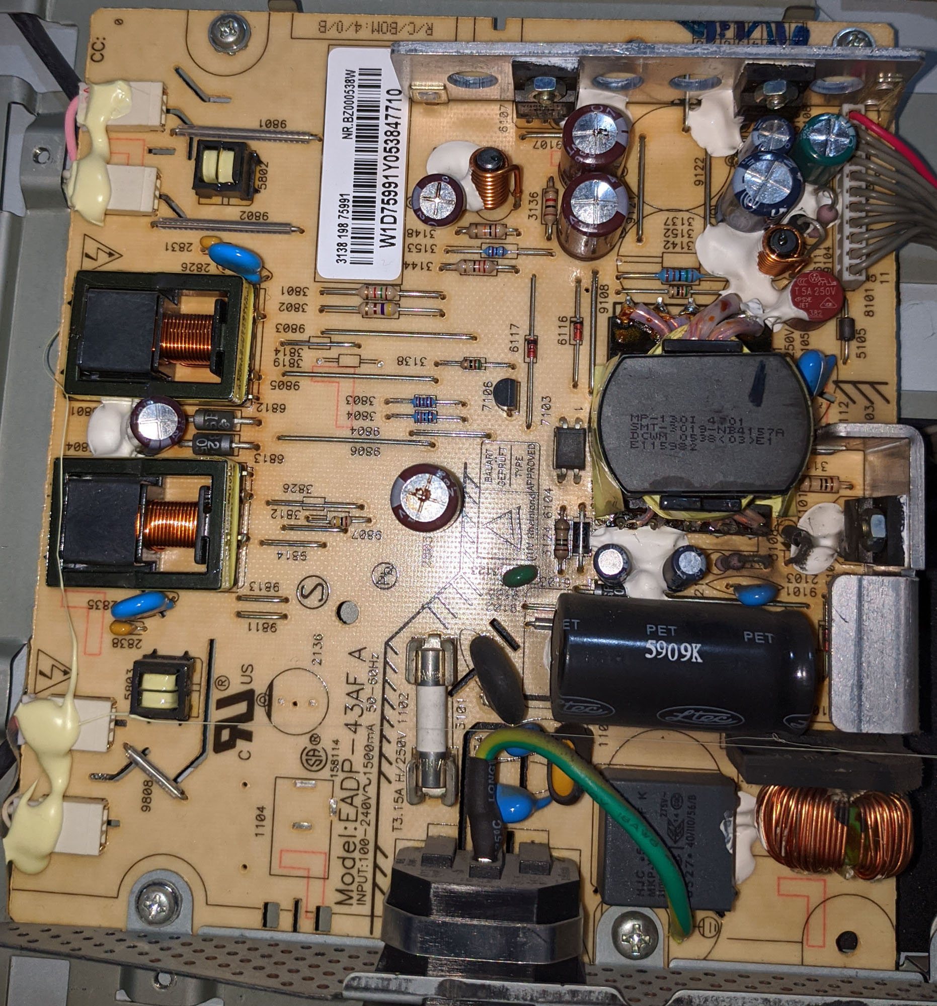 The reason the caps bulged is that Philips didn't make enough ventilation holes on the aluminum interference cover of the psu and the signal board.