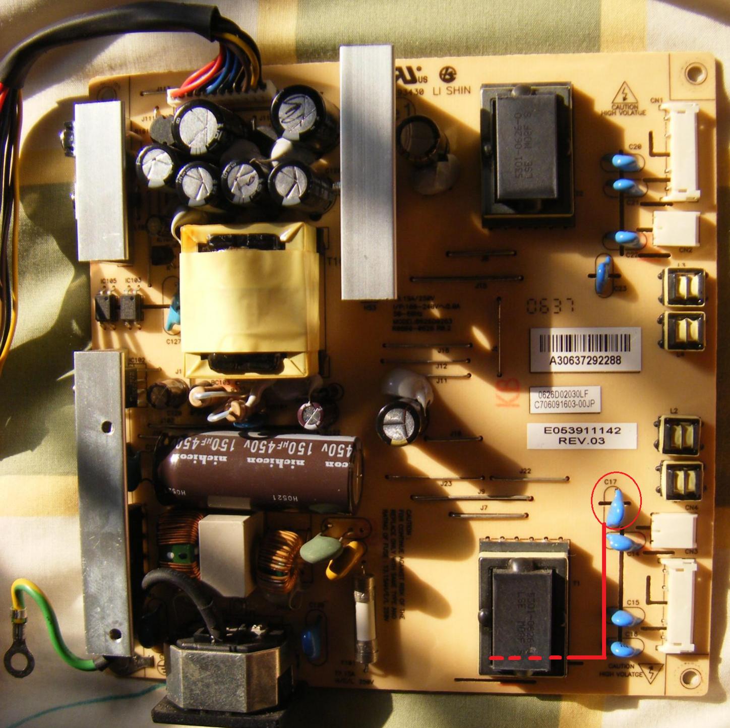 Here's the way this was designed to work, and my current theory as to the nature of the failure. The brightness is controlled by pulse width modulation - PWM. CCFLs work much like standard fluorescent lights - current flow through the lamp generated ultraviolet light which causes phosphors coating the inside walls of the tube to glow. They don't respond well to reducing the voltage; rather the duration of the 'on' time is varied. At 100 Khz, they are turned on every 5 microseconds. If they are on 1 microsecond out of every 5 they will be much dimmer than if they are on 4 microseconds out of 5. The current sensing circuitry is really responding to the peak current, not the average current, just like the voltage sensing circuitry is responding to the peak voltage.