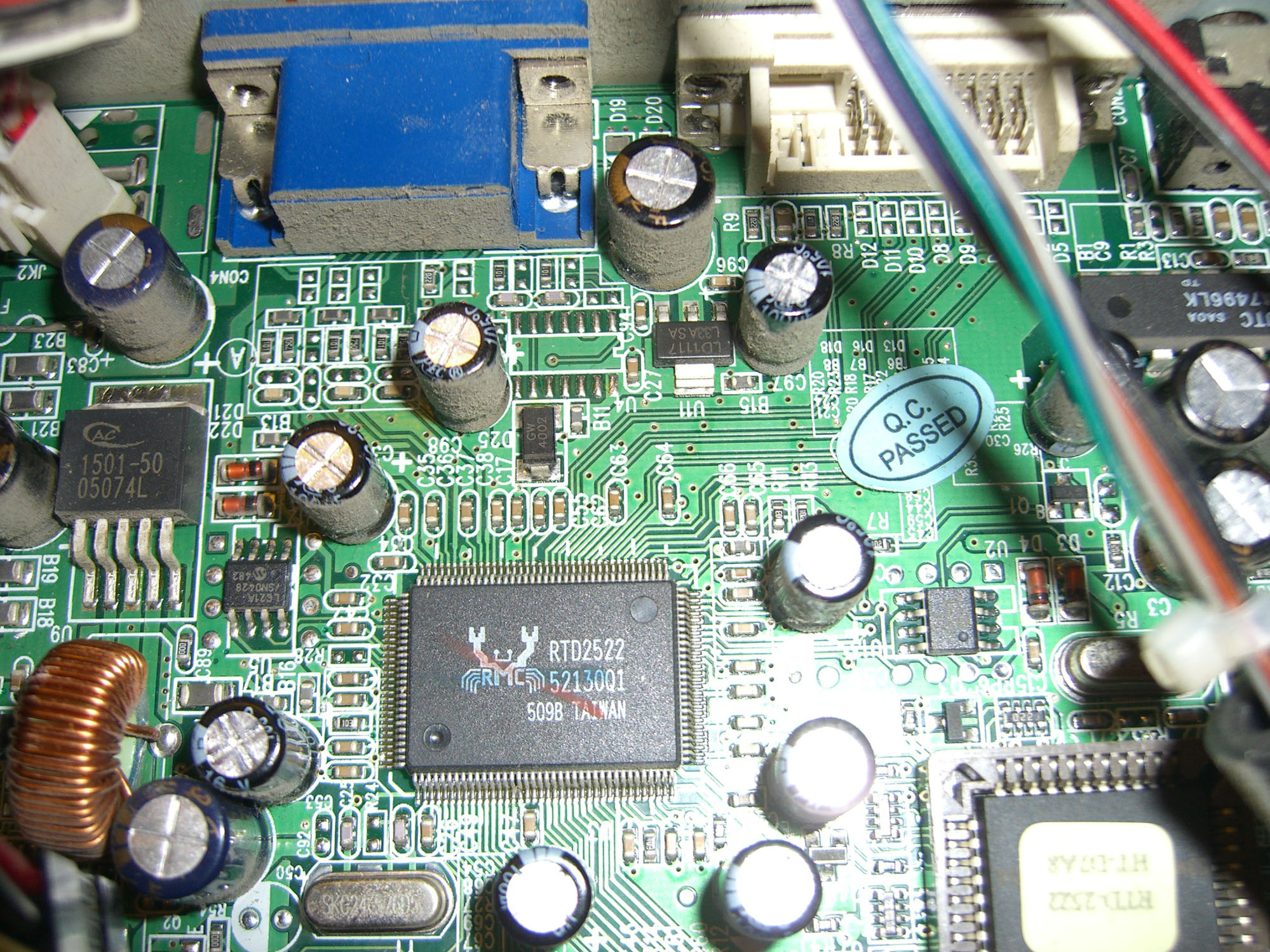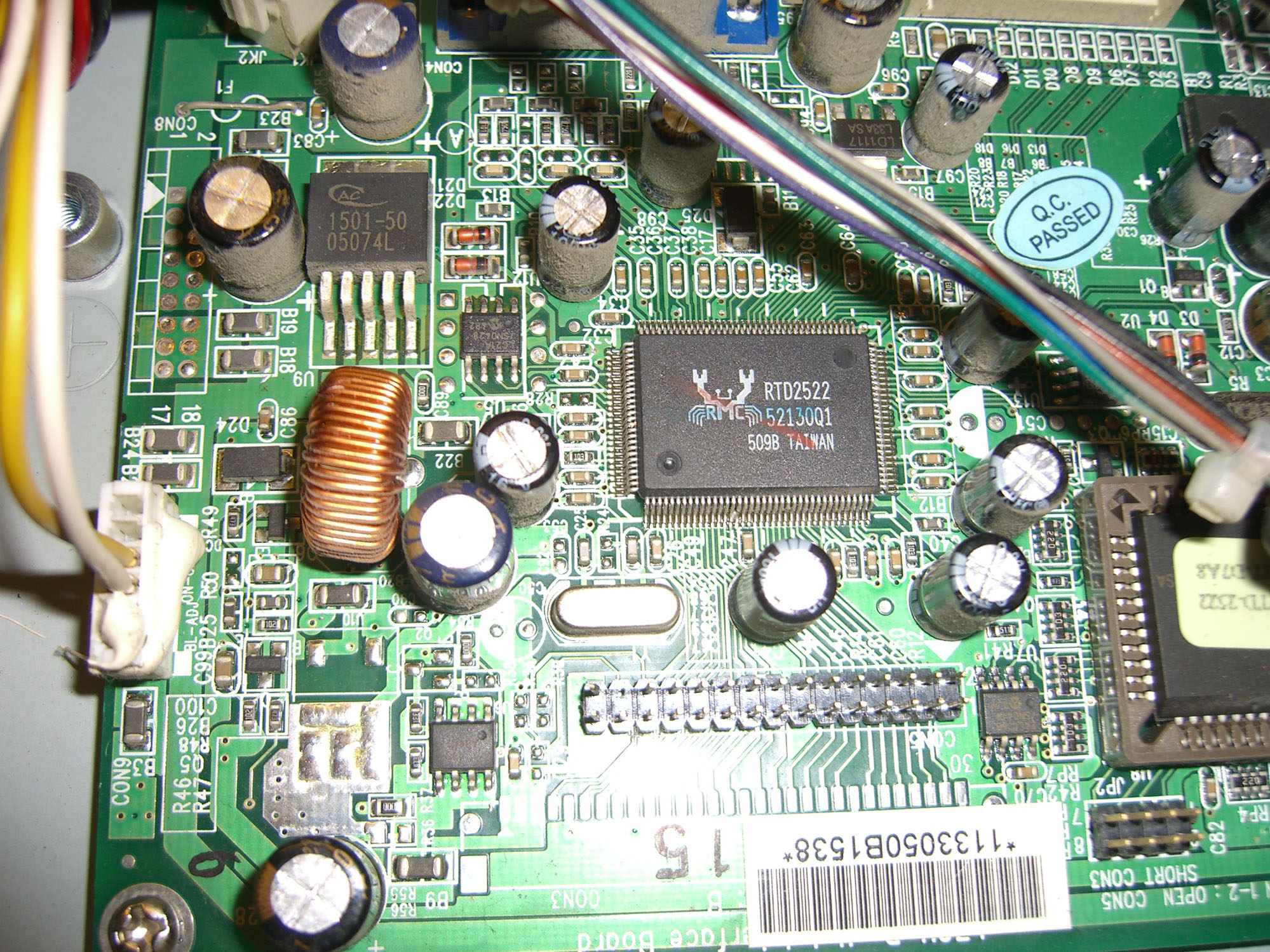 The second thing to try is I have marked two inductors in the upper left hand corner with a white L. If you have received your soldering iron, remove the lower one on the board and see if the power supply will work. This disables the inverter. (I'm not sure your 'cold soldering tool' will work on anything this heavy. That is heavy gauge copper wire).