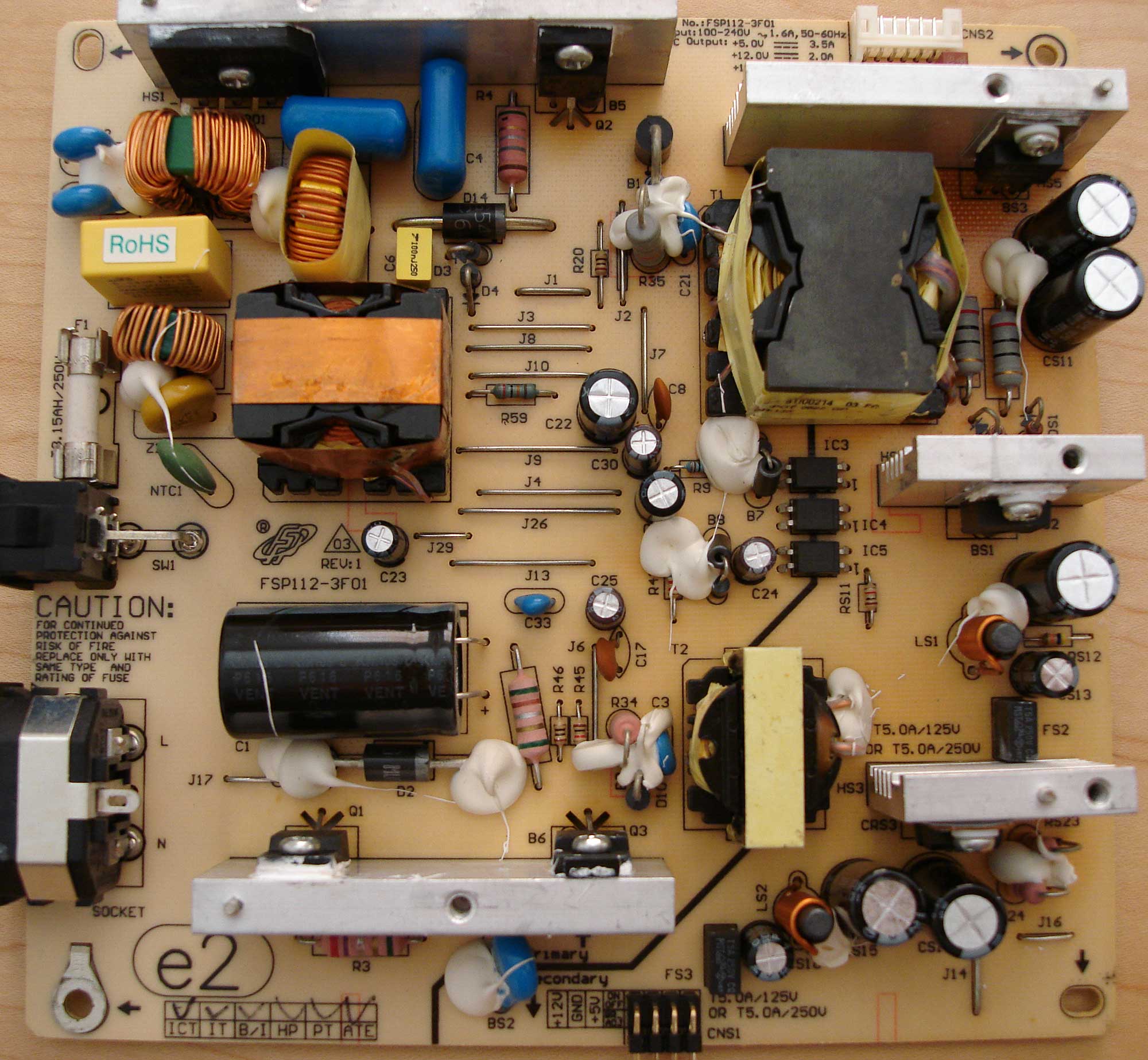 CleanSC: I have just the opposite problem, 5V present but no 12V. I saw in one of the posts here that it was proposed that the 5V rail is first to have power, then the logic board turns the 12V rail on. Is that right? I have no 12V rail, and when I power on the monitor, the green LED quickly goes out (~50-100ms).