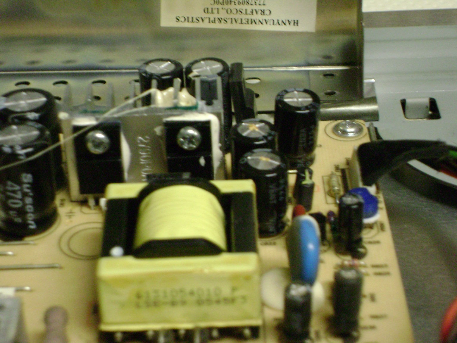 Assuming the voltage at each junction of the resistors decreased linearly (112 volts at the junction of R912 and R915; 57 volts at the junction of R915 and R918), we know the SMPS controller (SG6841SZ) is bad; it can be replaced at a cost of $6.00, and that others have repaired monitors with the same symptoms and the same IC simply by replacing the SG6841SZ.