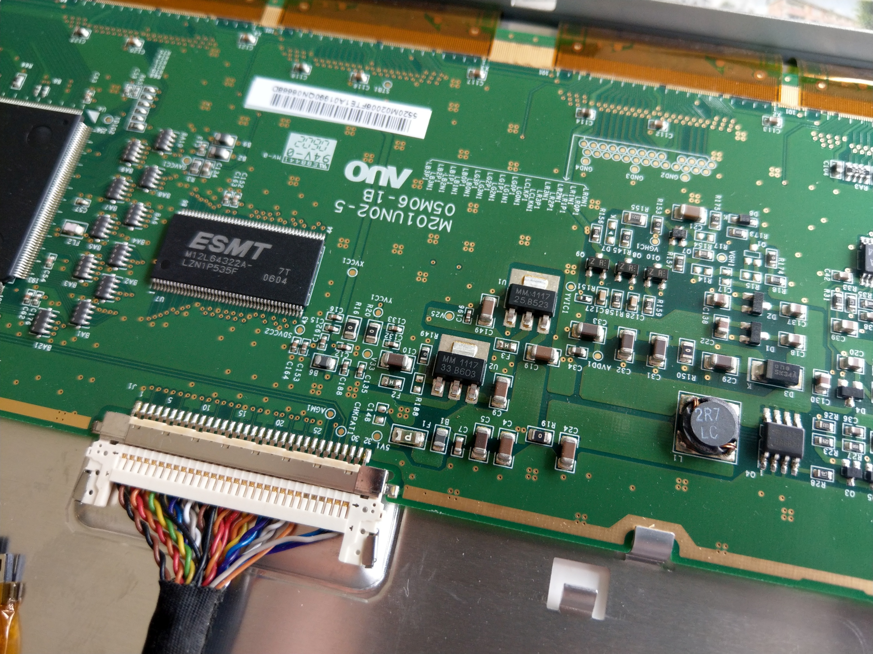 Is the LCD fubar? I mean you got the crystals working, there is activity on the lvds… is there a small skinny board under the LCD? Maybe the problem lies there.