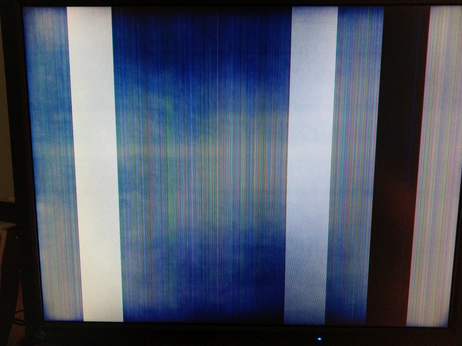 The monitor starts with a kind of "star galaxy" pattern that gets brighter and brighter.