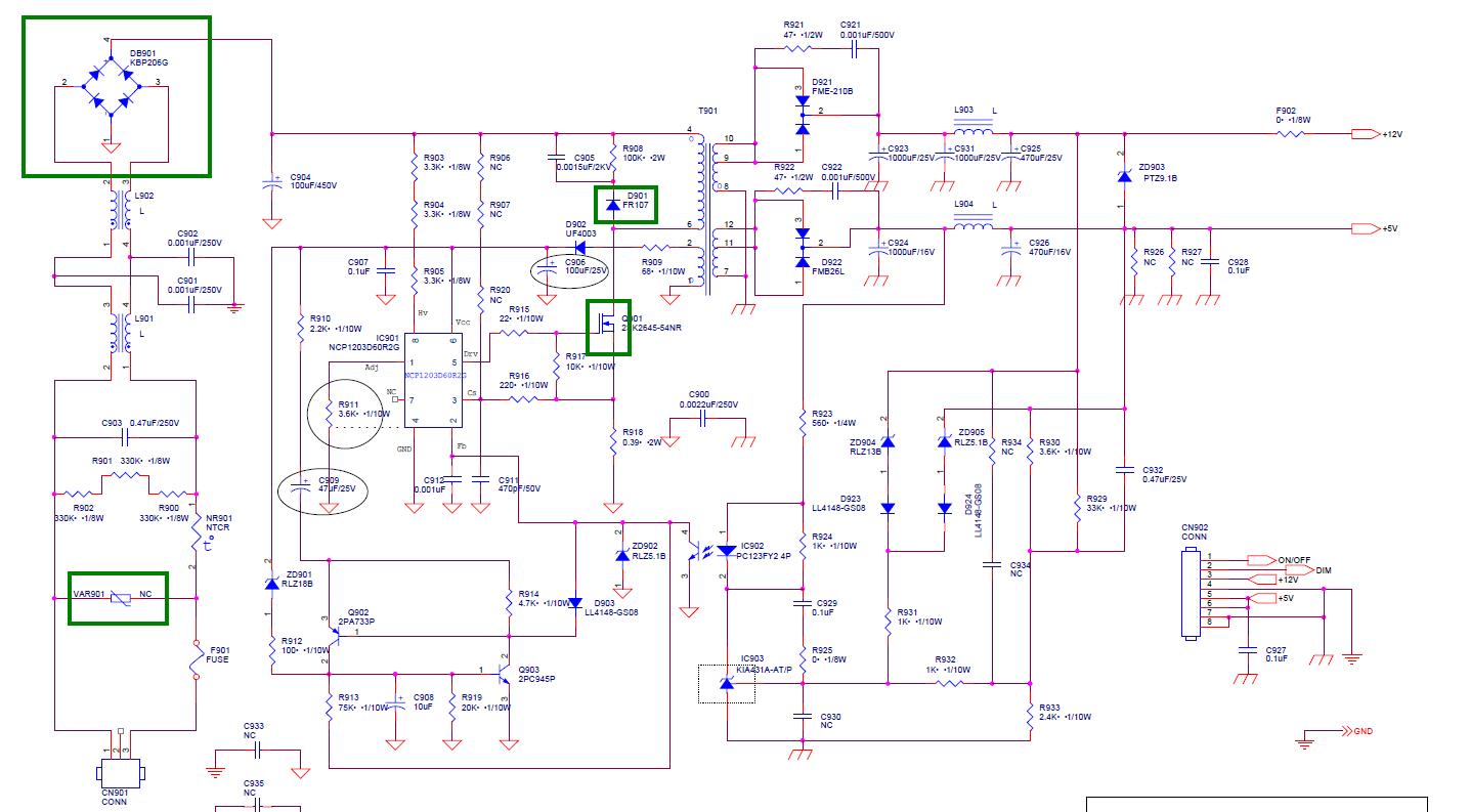 I just finished replacing all the bad caps since I got the new ones today and still no power to the lights. LCD works, image shows up, green power light comes on, just no juice to the lights..Leave a comment: