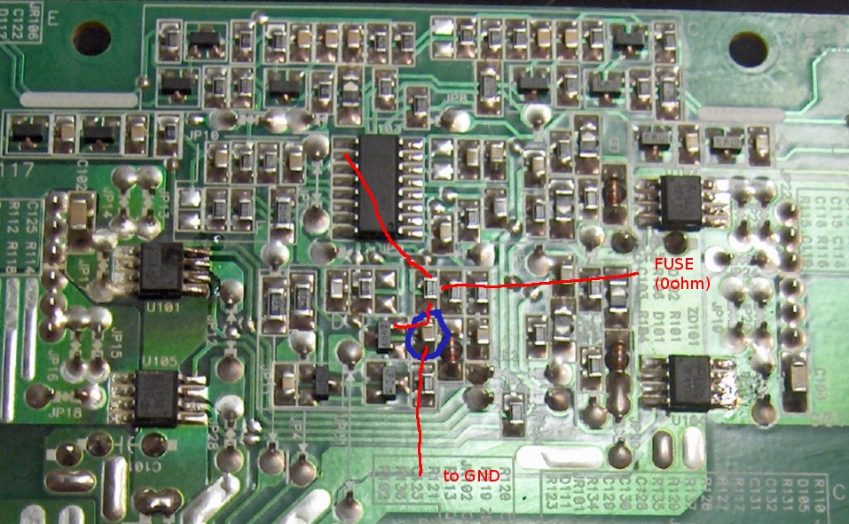 oops, i forgot to mention. This cap (is it a cap?) in blue circle is 5-20-100ohms (oscilating) and little burned up.